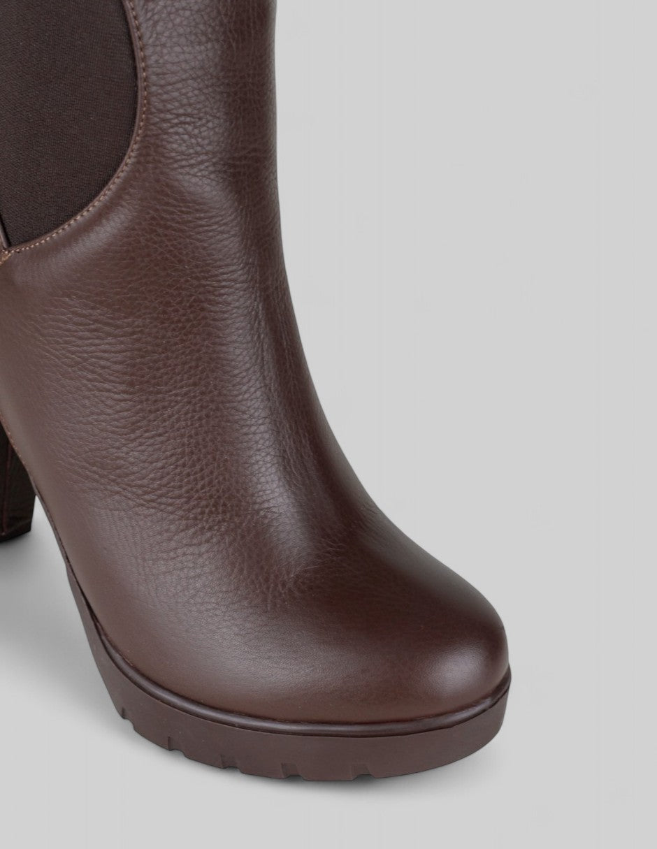 Botín con tacón Exterior Piel Color Café Para Mujer De RBCOLLECTION