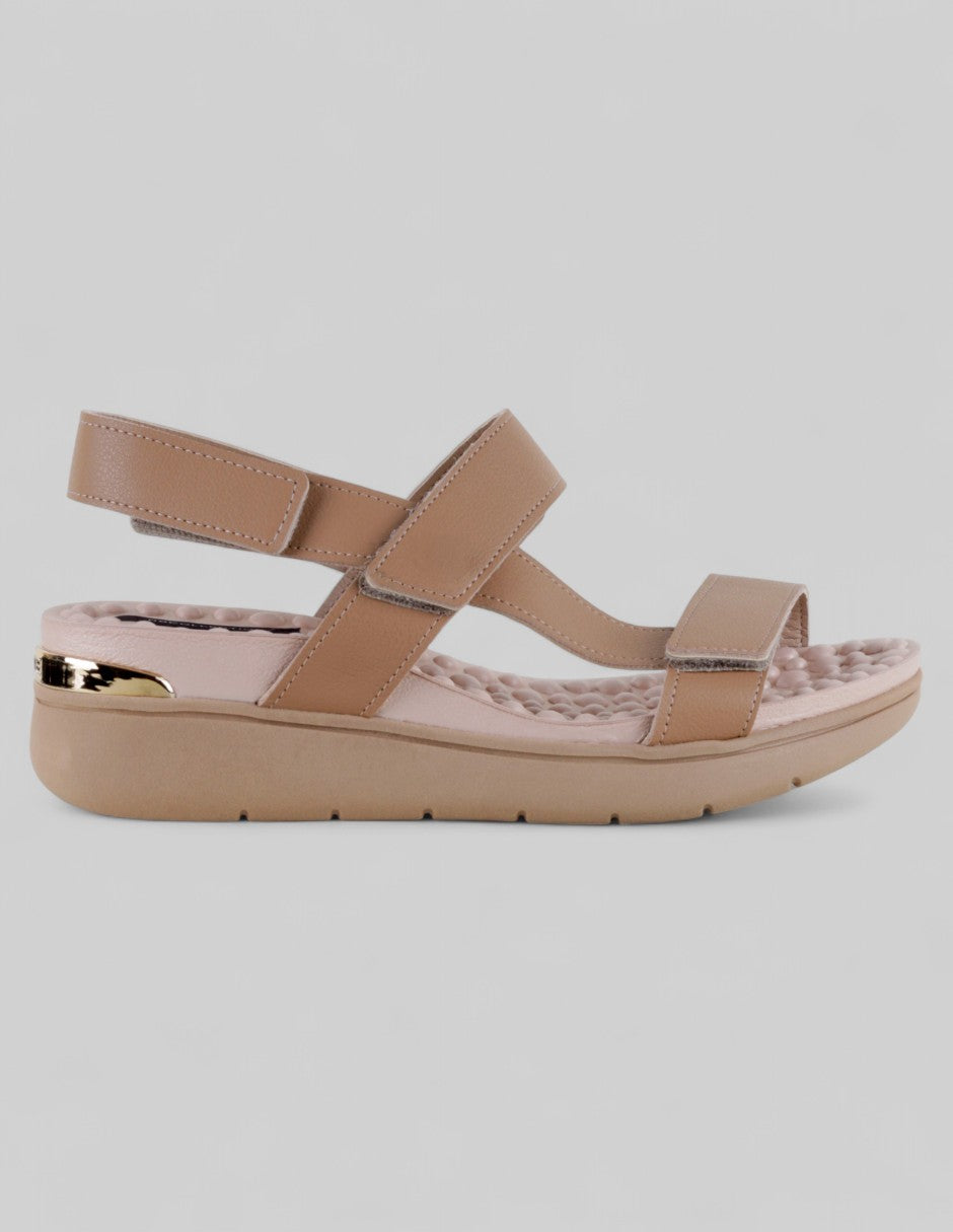 Las sandalias con plataforma modelo Steps de RBCOLLECTION en piel vegana café fusionan comodidad moderna y acento decorativo. El ajuste con velcro facilita calzarlas en segundos, mientras el dije metálico añade un punto de interés sutil. Úsalas para salir de compras, caminar cómoda o llevarlas al trabajo. ¡Descúbrelas ahora en nuestra tienda digital!