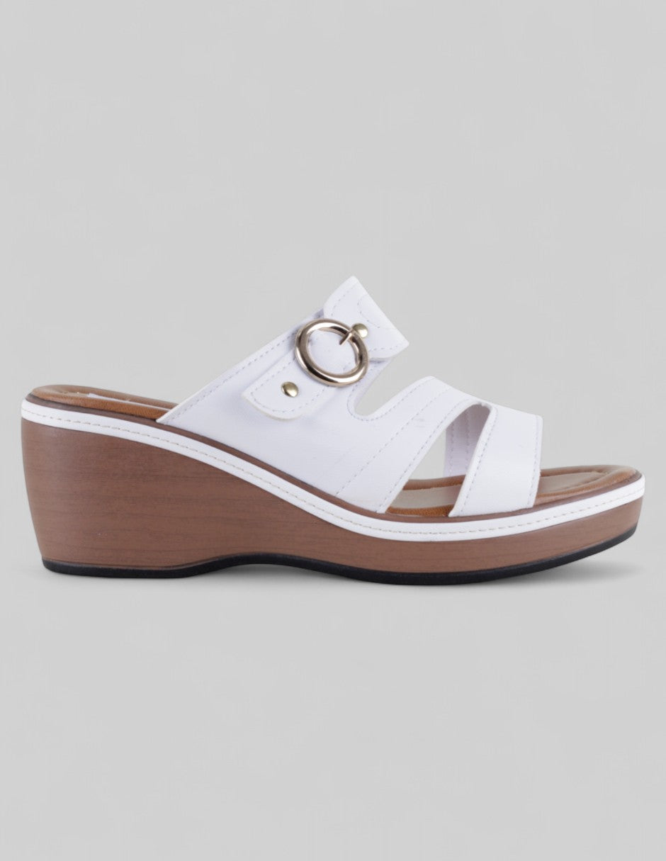Las sandalias con plataforma modelo Soft de RBCOLLECTION en piel vegana blanca combinan frescura y estructura en un diseño que resalta por su sencillez funcional. La hebilla decorativa aporta un contraste visual que eleva cualquier conjunto casual. Úsalas en trayectos diarios, recados o caminatas ligeras. ¡Agrégalas a tu carrito y renueva tu día!