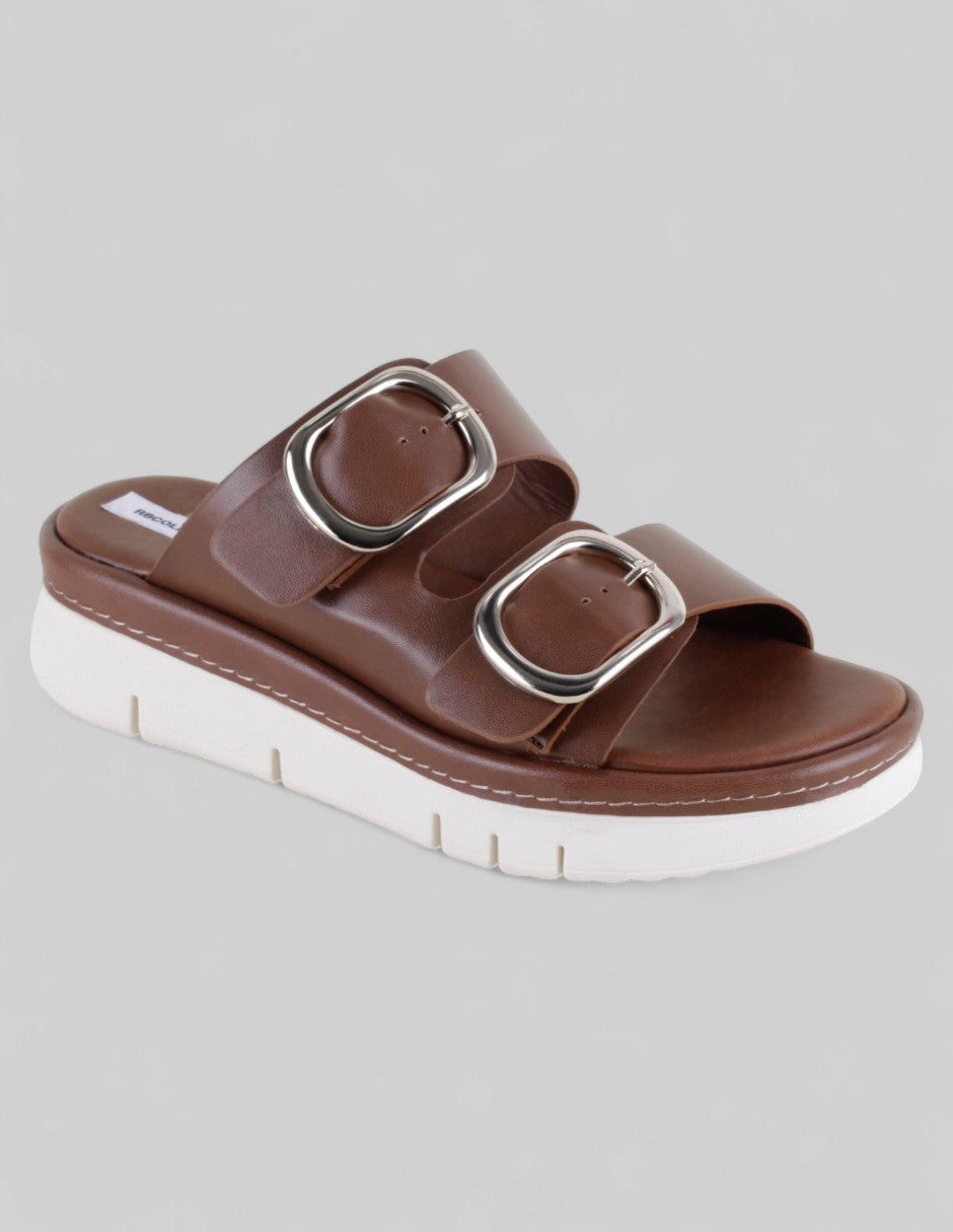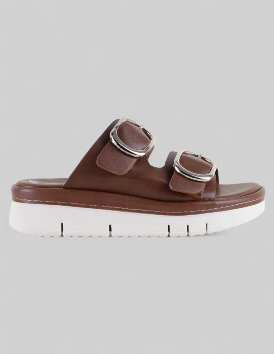Las sandalias con plataforma modelo Steps de RBCOLLECTION en piel vegana color café equilibran comodidad y carácter visual con hebillas decorativas al frente. El ajuste de un tiempo permite calzarlas al instante, ideales para días cálidos, recados cercanos o caminatas relajadas. ¡Agrégalas a tu carrito y recíbelas directo en casa!