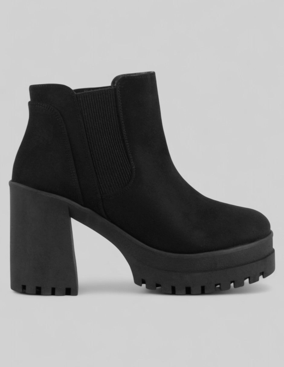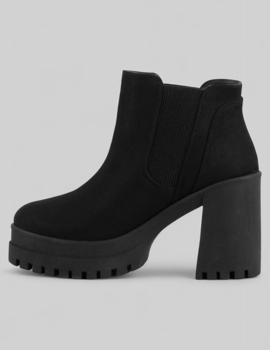 El botín con tacón modelo Osom de RBCOLLECTION en gamuza color negro aporta presencia firme con su plataforma robusta y ajuste de un tiempo que facilita el calce. Ideal para caminar por la ciudad, acompañar prendas amplias o looks de capas. ¡Hazlo parte de tu estilo con tu compra online hoy!