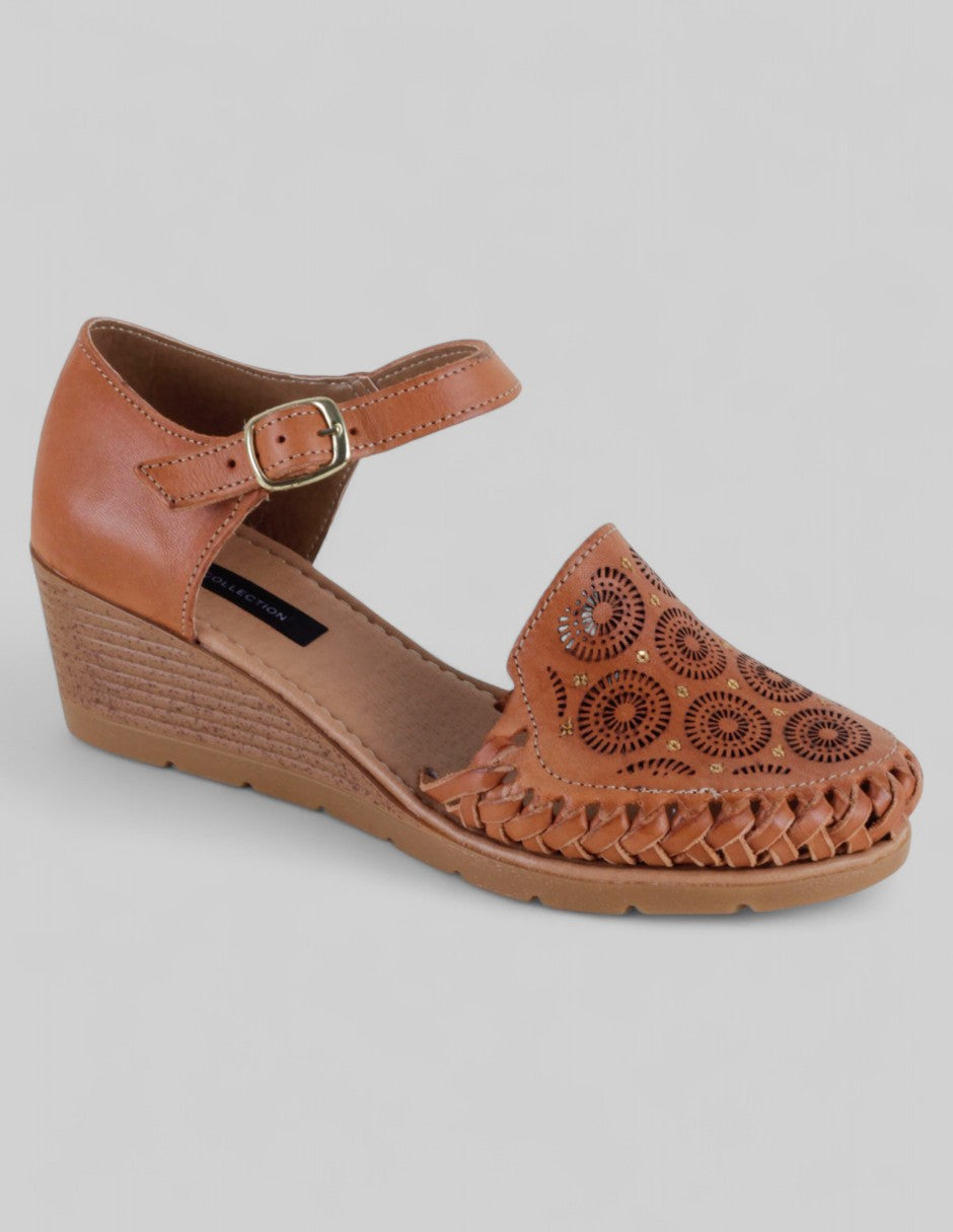 El tacón puente modelo Hand made de RBCOLLECTION fusiona piel café con delicadas aberturas digitales y tacón puente que estiliza sin cansar. Su ajuste con hebilla brinda seguridad para usarlo en la oficina, una comida o al salir por la ciudad. ¡Haz tu compra online y transforma tu caminar con elegancia y comodidad!