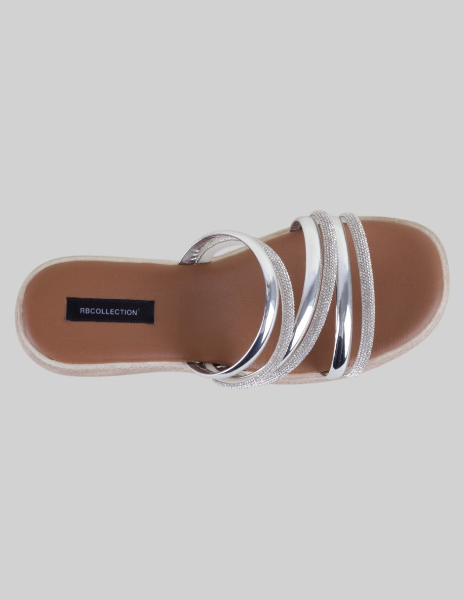 Las sandalias con plataforma modelo Steps de RBCOLLECTION en sintético plata iluminan el andar con su brillo elegante y tiras decoradas con pedrería. Su ajuste práctico permite calzarlas al instante, ideales para elevar looks frescos en comidas, recados o citas informales. ¡Agrégalas hoy y renueva tu rutina con estilo inesperado!