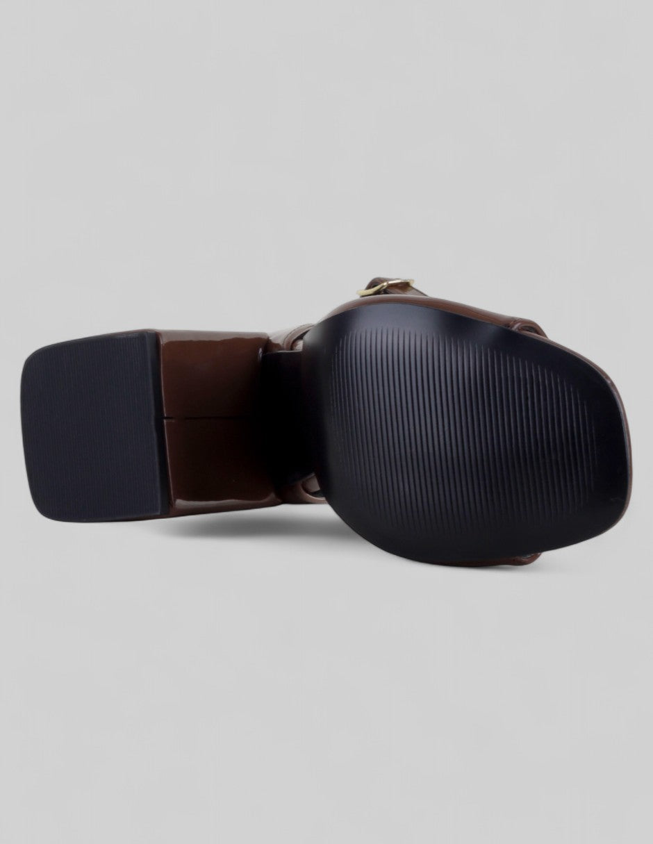 Sandalia con tacón Exterior Charol Color Café Para Mujer De RBCOLLECTION