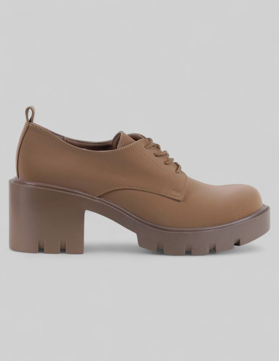 • Botín con tacón Ferm en Piel de Durazno – Café