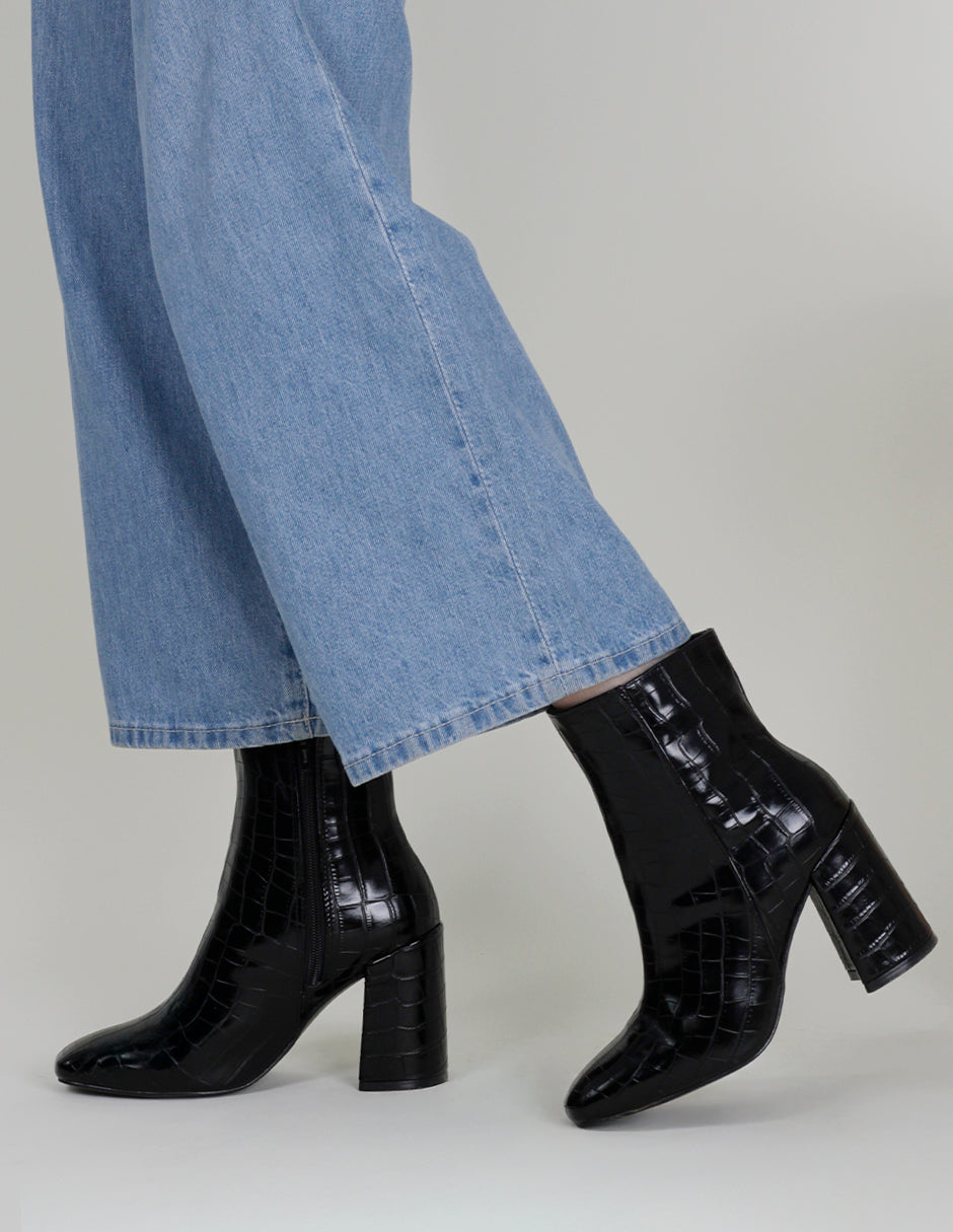 Botín con tacón Exterior Piel vegana Color Negro Para Mujer De RBCOLLECTION