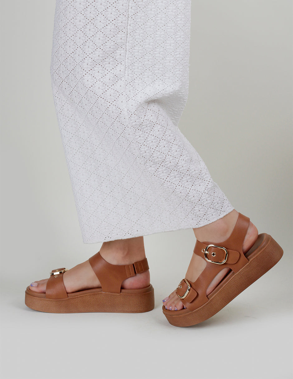 • Sandalias con plataforma Steps en Piel vegana – Café