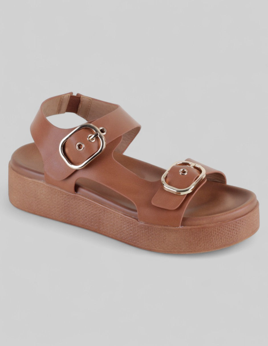 Las sandalias con plataforma modelo Steps de RBCOLLECTION en piel vegana color café destacan por su silueta estructurada y detalles metálicos que simulan hebillas al frente. El ajuste real con resorte en la correa trasera brinda comodidad inmediata sin sacrificar diseño. Llévalas en días activos o salidas relajadas. ¡Ordénalas hoy mismo en línea!