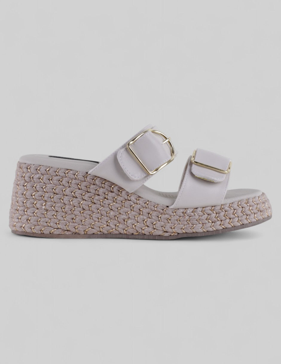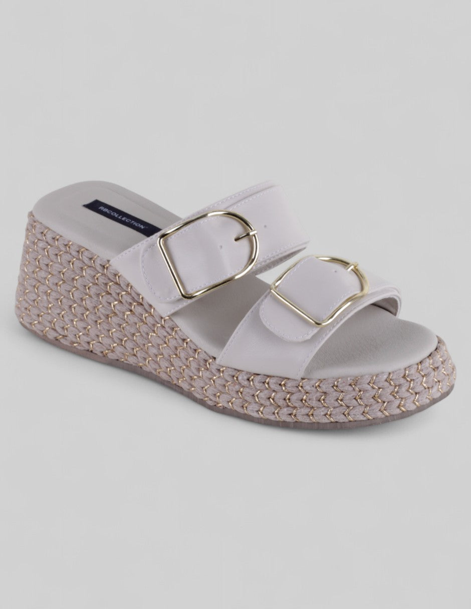 Las sandalias con plataforma modelo Naia de RBCOLLECTION en piel vegana blanca combinan altura ligera y estilo fresco. Las hebillas decorativas dan un toque actual sin recargar, ideales para caminar por la ciudad, acompañar un vestido vaporoso o dar presencia a un conjunto neutro. ¡Pide las tuyas desde la tienda digital!