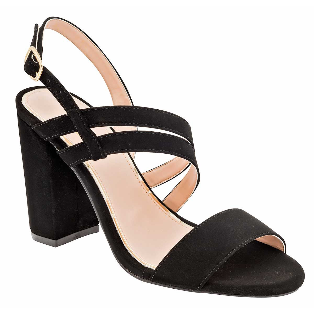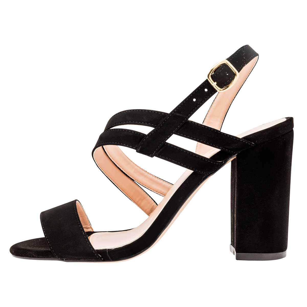 Tacones color negro exterior piel sintética, ajuste pulsera, construcción vegana