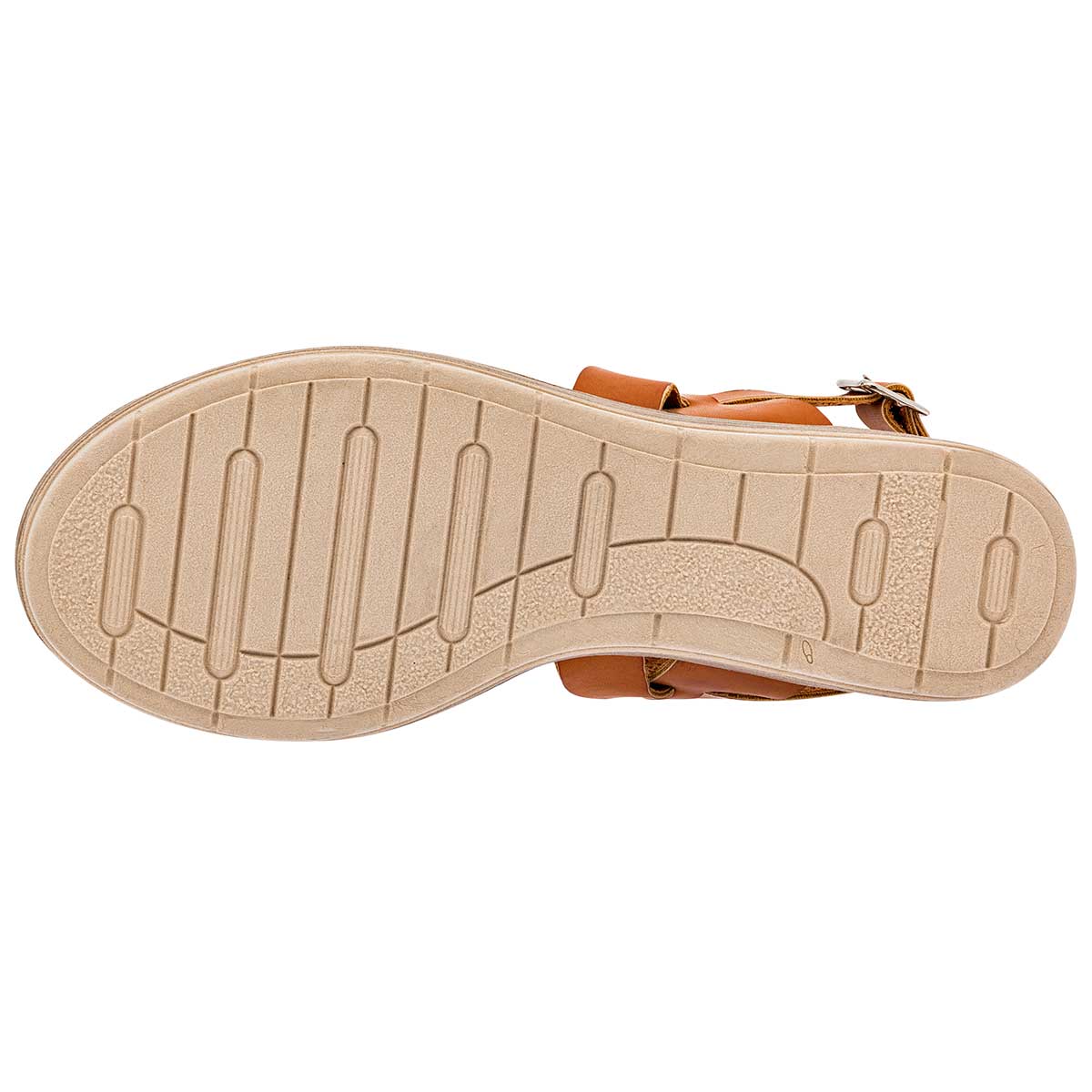 Sandalias color camel exterior piel sintética, ajuste pulsera, construcción nacional