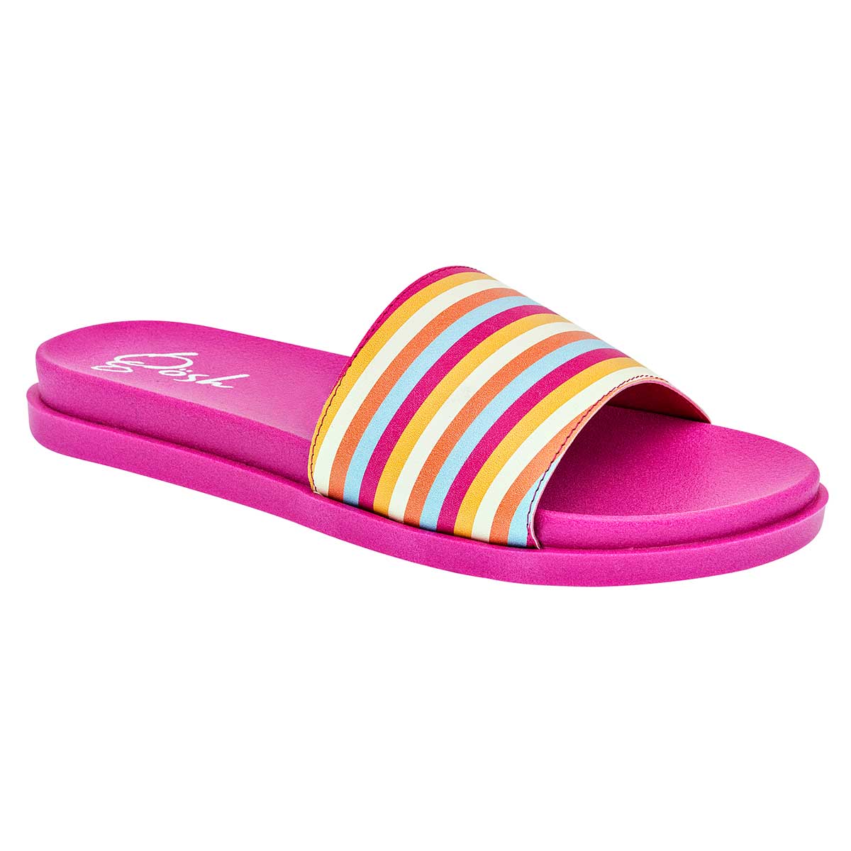 Sandalias color rosa exterior sintético, ajuste slip - on, construcción nacional