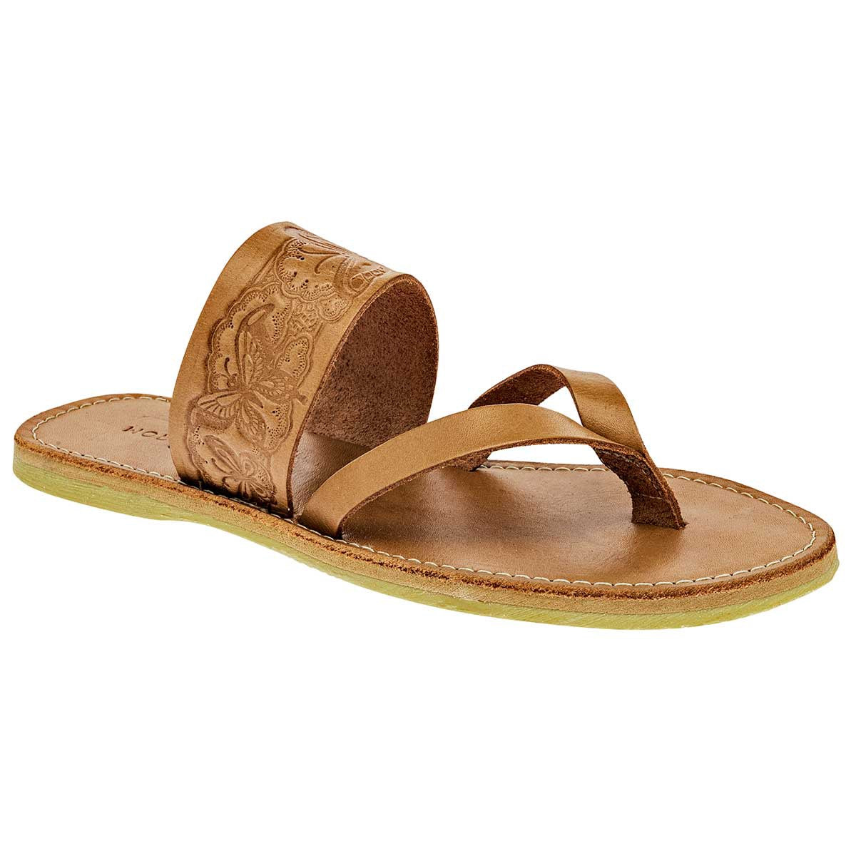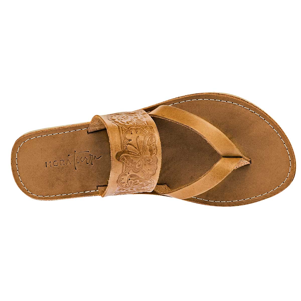 Sandalias color camel exterior piel, ajuste slip - on, construcción nacional
