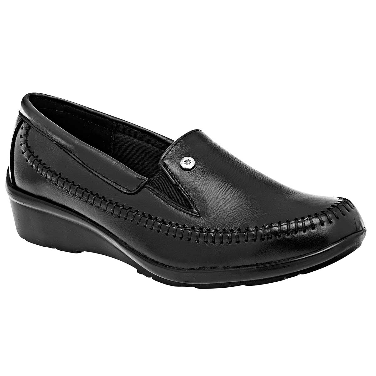 Tacones color negro exterior piel, ajuste slip - on, construcción nacional