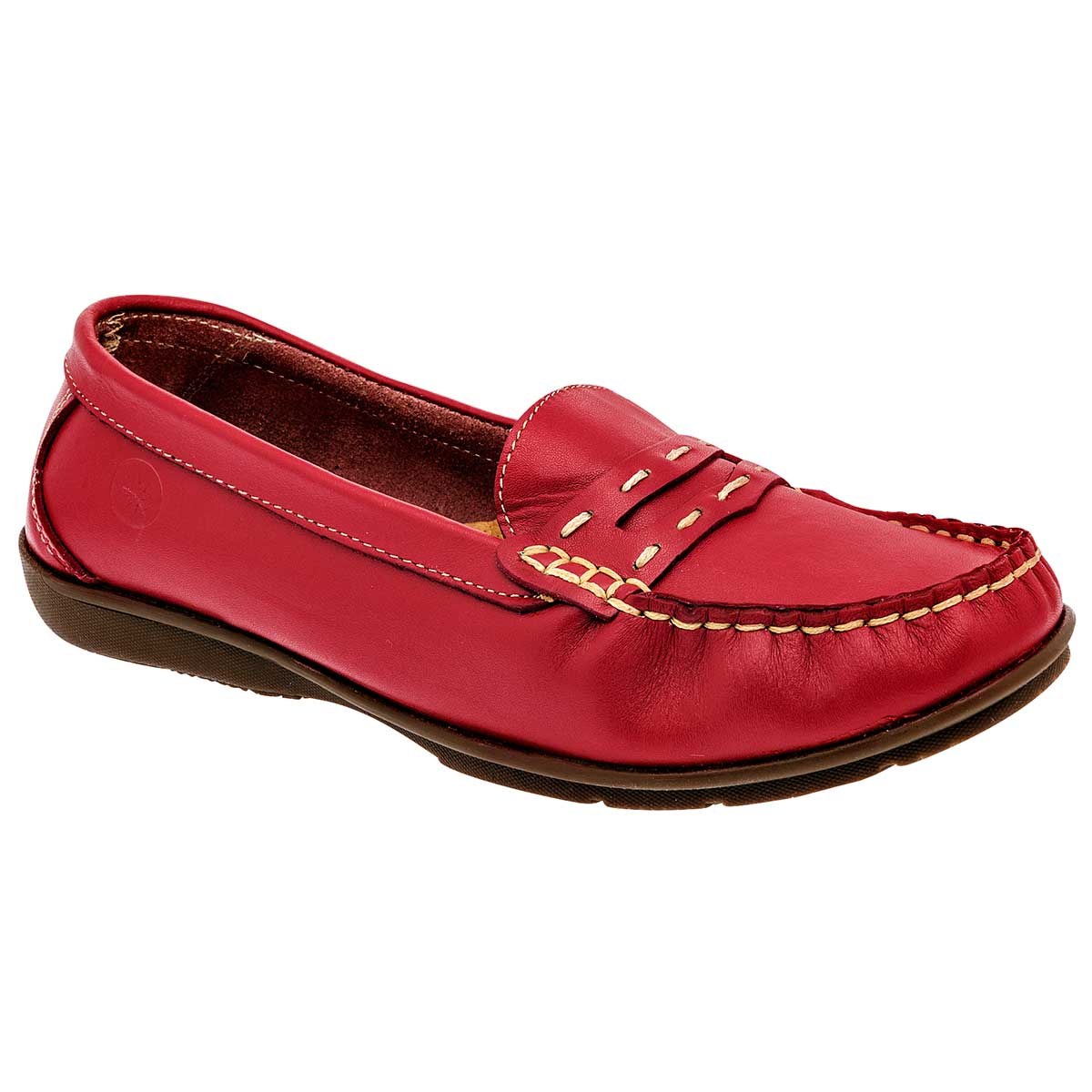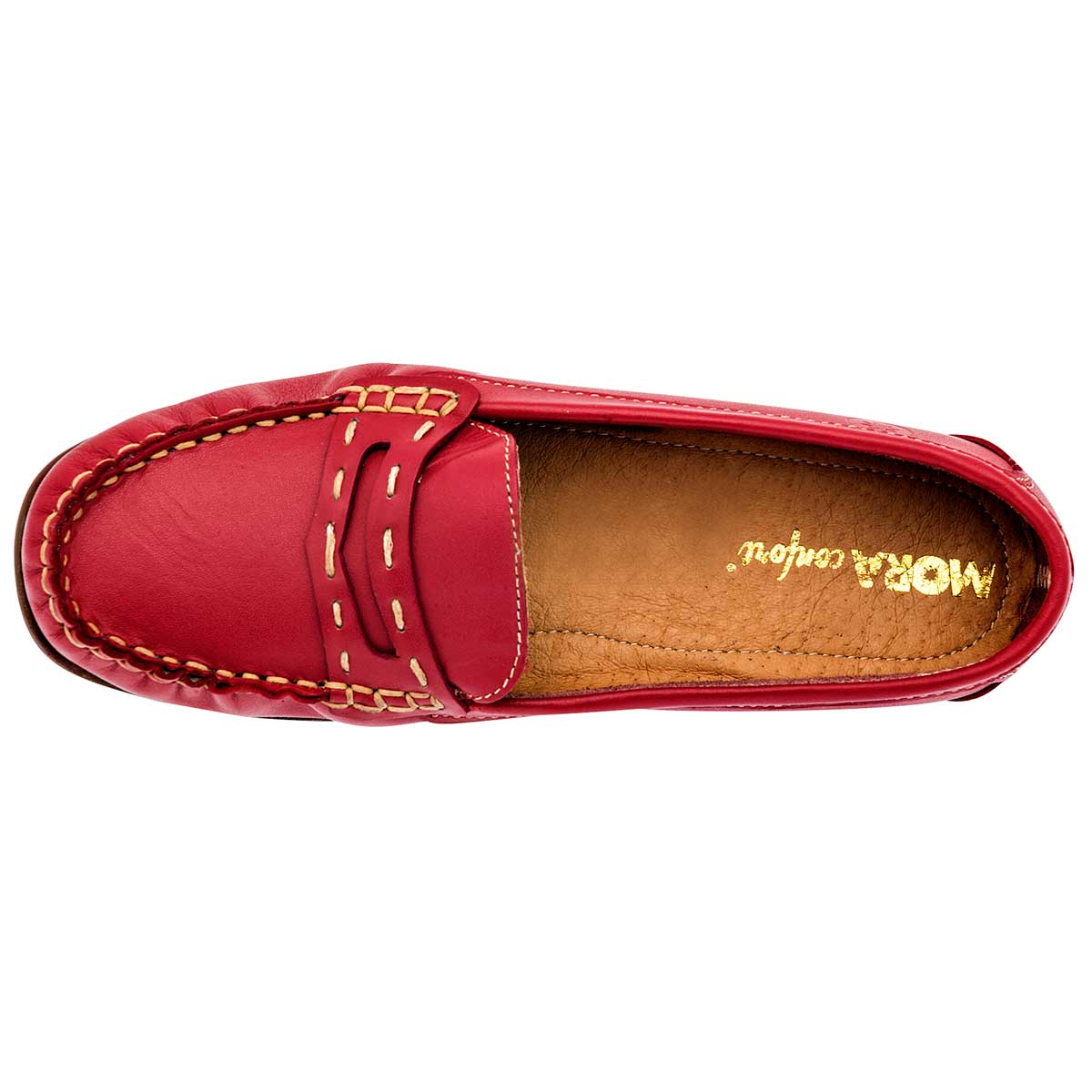 Mocasines Exterior Piel Color Rojo Para Mujer De Mora Confort