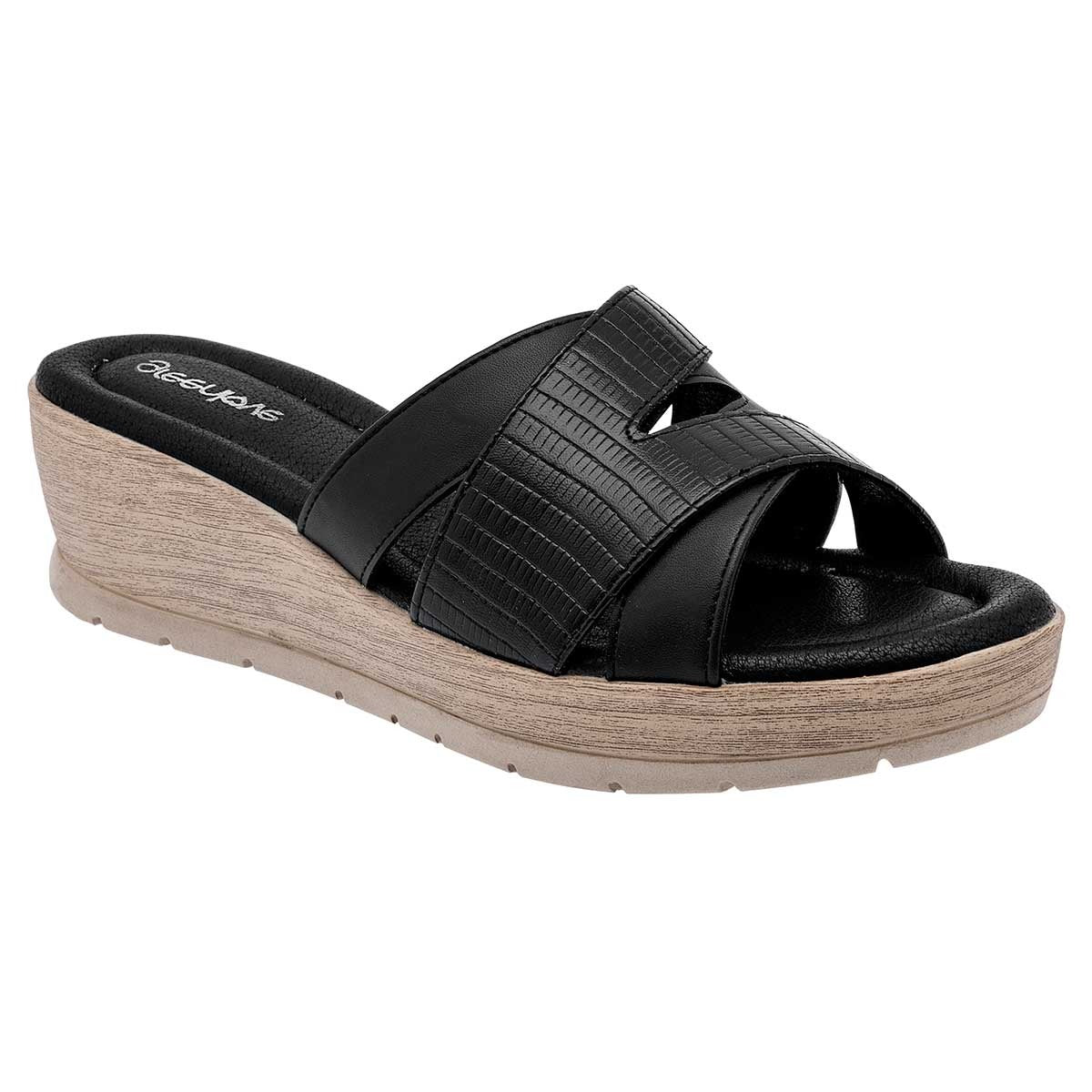 Sandalias con plataforma color negro exterior sintético, ajuste con 1 tiempo, construcción vegano