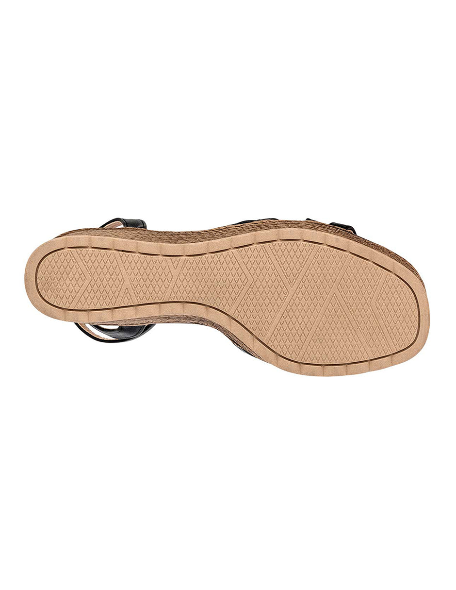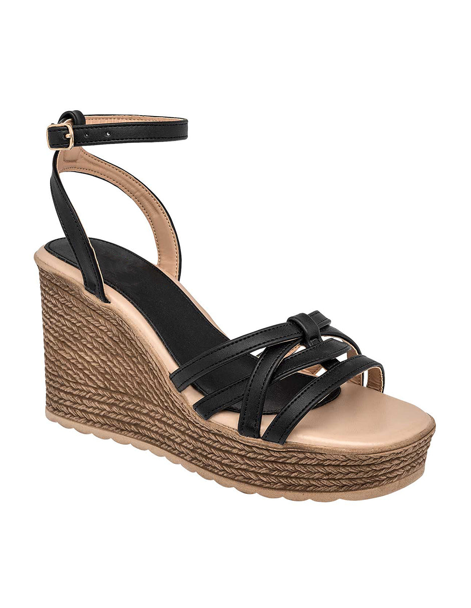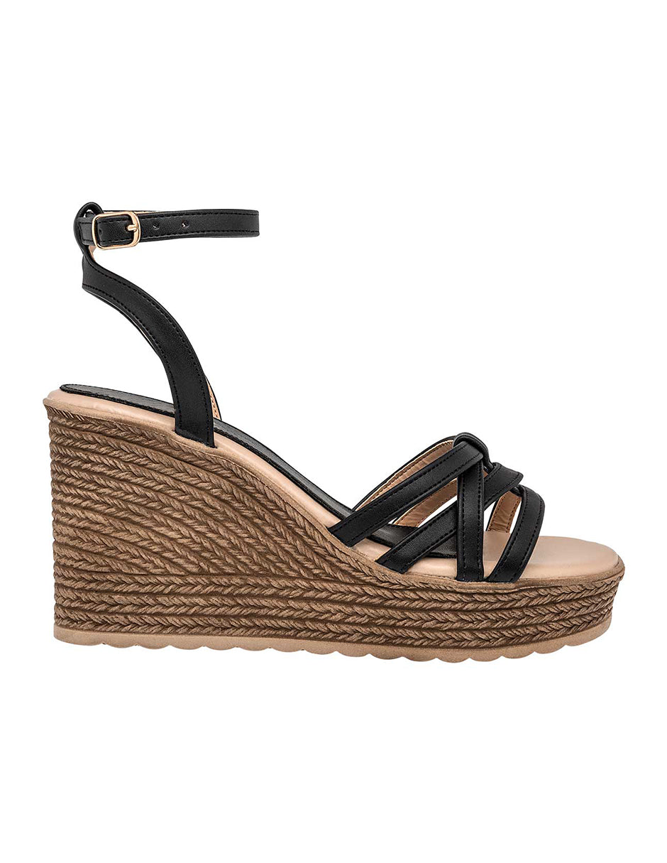Sandalias con plataforma color negro exterior piel sintético, ajuste con hebilla, construcción vegano