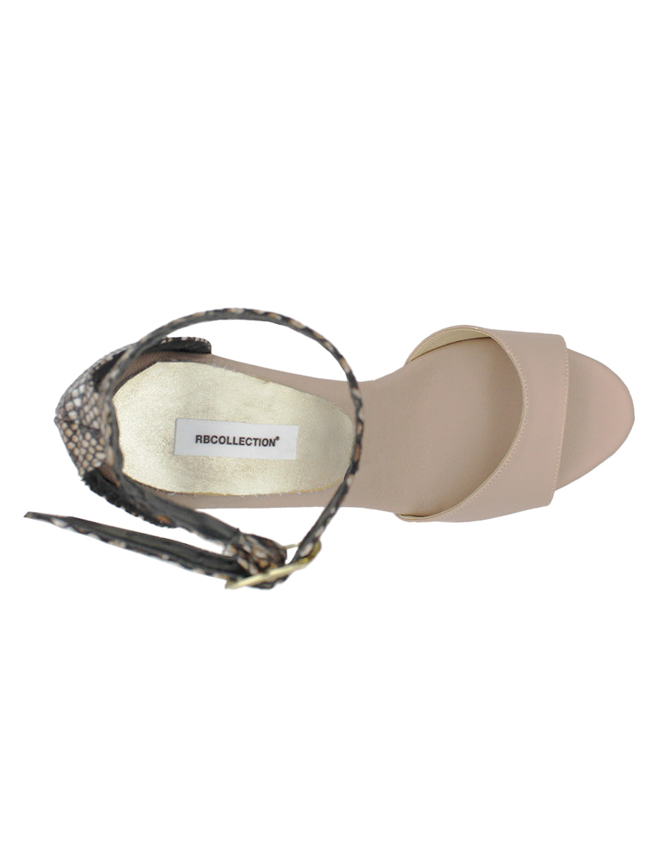 Sandalia con Tacón Exterior Sintético Color Beige  Para Mujer De RBCOLLECTION