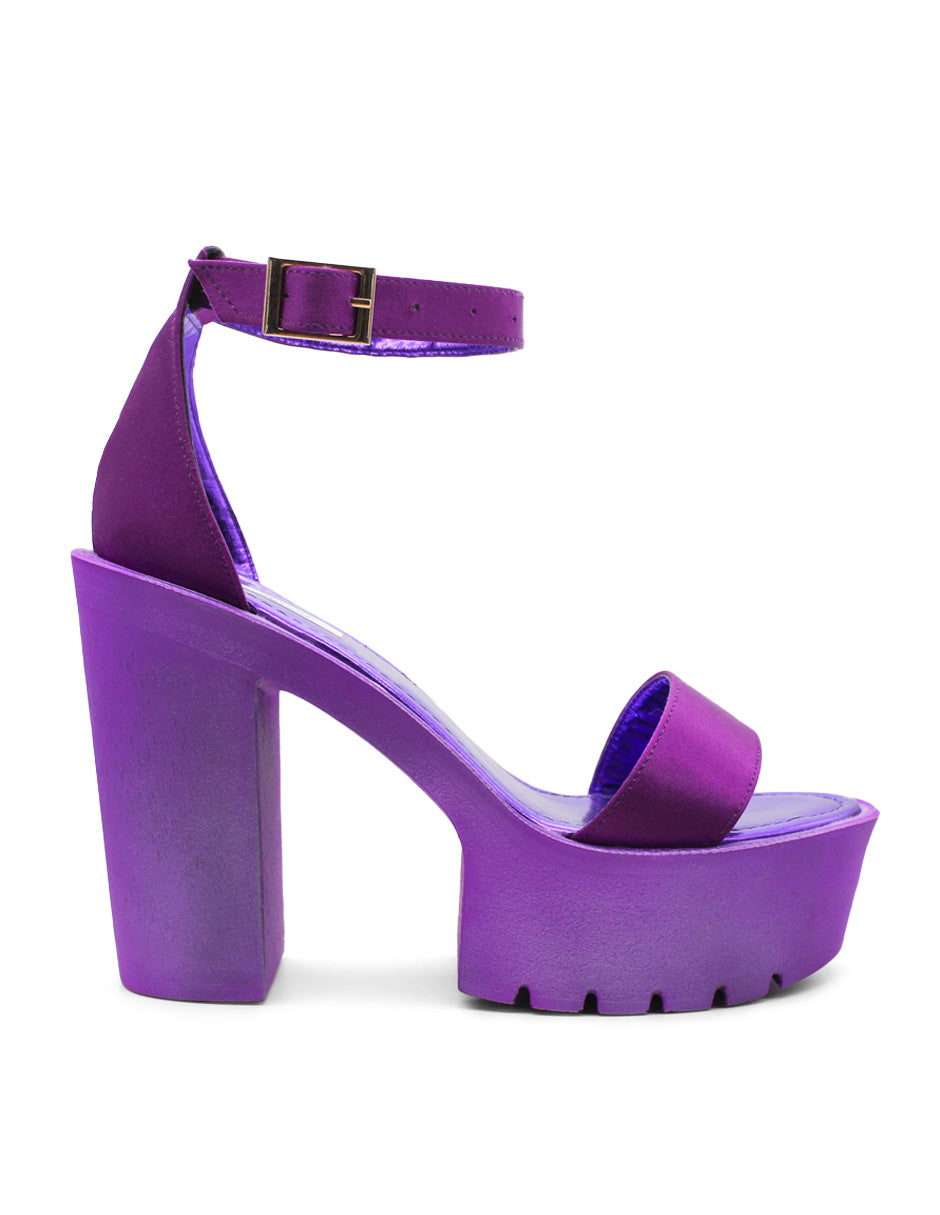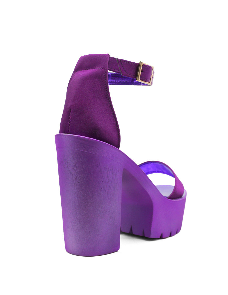 Sandalia con Tacón Exterior Textil Color Morado Para Mujer De RBCOLLECTION