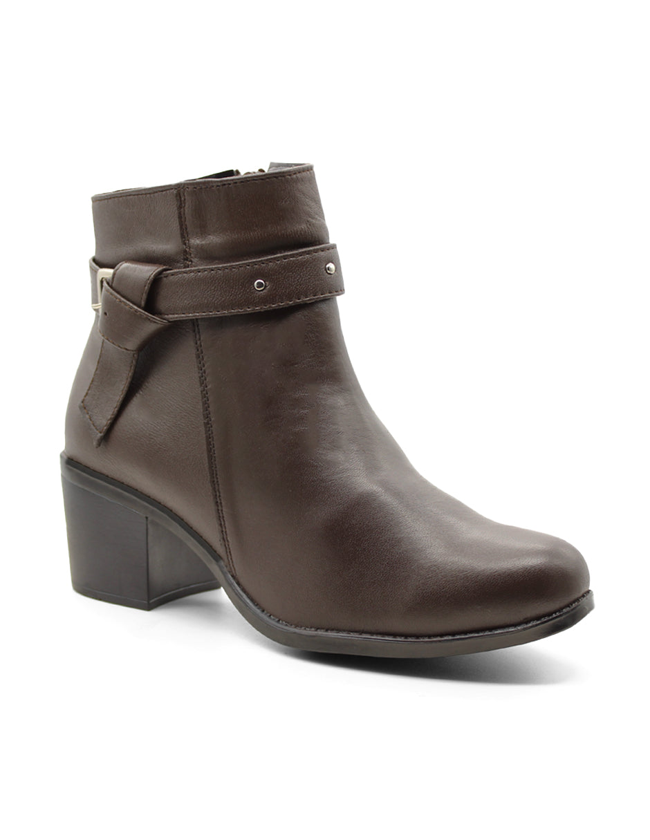 Botín con tacón  Exterior Piel Color Café Para Mujer De RBCOLLECTION