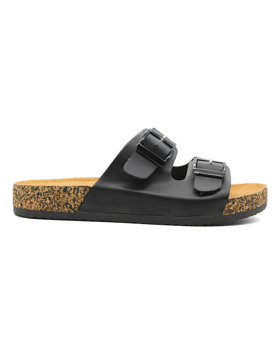 Sandalias de piso color negro exterior sintético, ajuste con 1 tiempo, construcción vegano