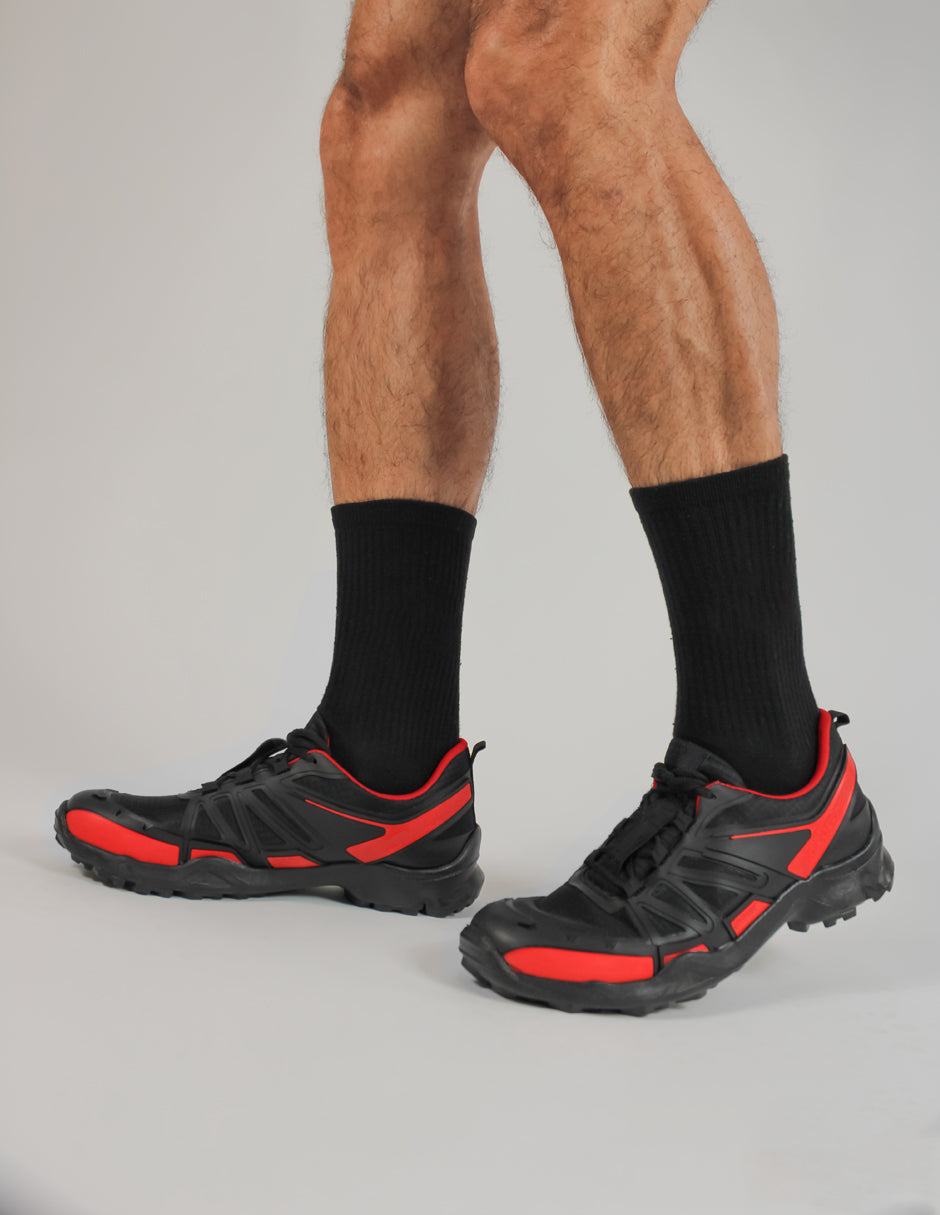 Tenis para senderismo Exterior Textil con placa de recubrimiento a lo largo del guante para terrenos mas duros Color Negro Con Rojo Para Hombre De RBCOLLECTION