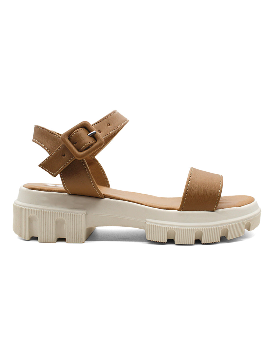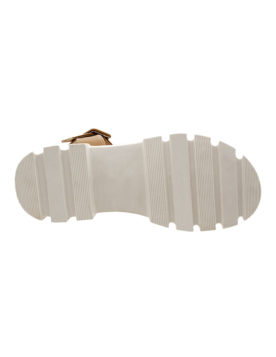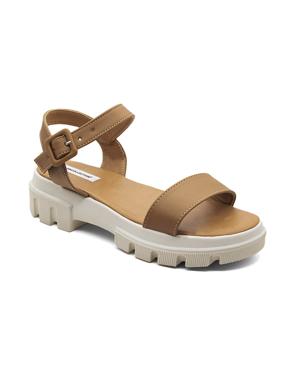 Sandalias de piso color blanco exterior sintético, ajuste con hebilla, construcción vegano
