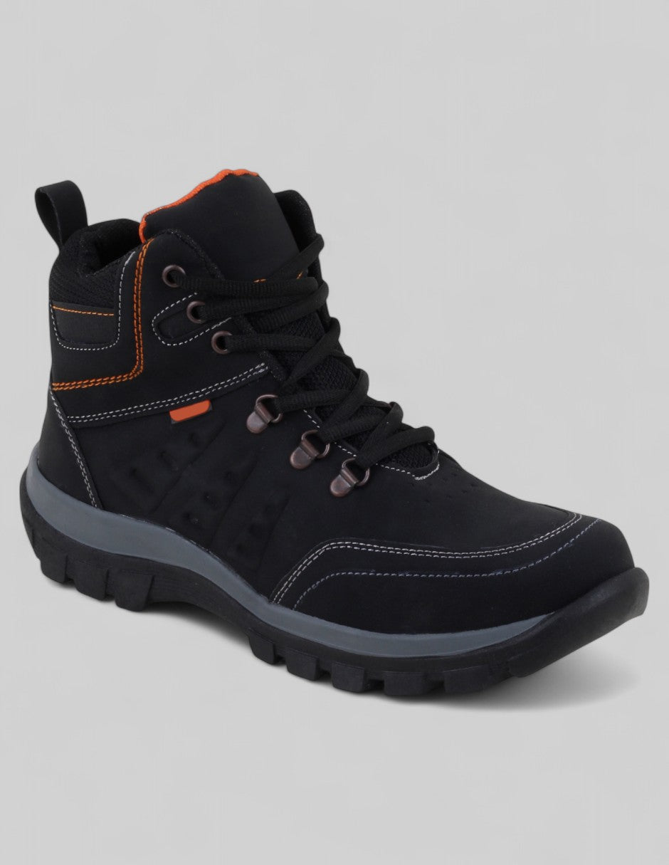 Botas industriales en piel vegana  color negro de RBCOLLECTION, modelo Work. Resistentes, ligeras y con suela de alta tracción. Ajuste cómodo para distintos tipos de pie. Diseñadas para ofrecer seguridad y confort en cada jornada. Hazlas parte de tu día a día y trabaja con confianza, estilo y protección total.
