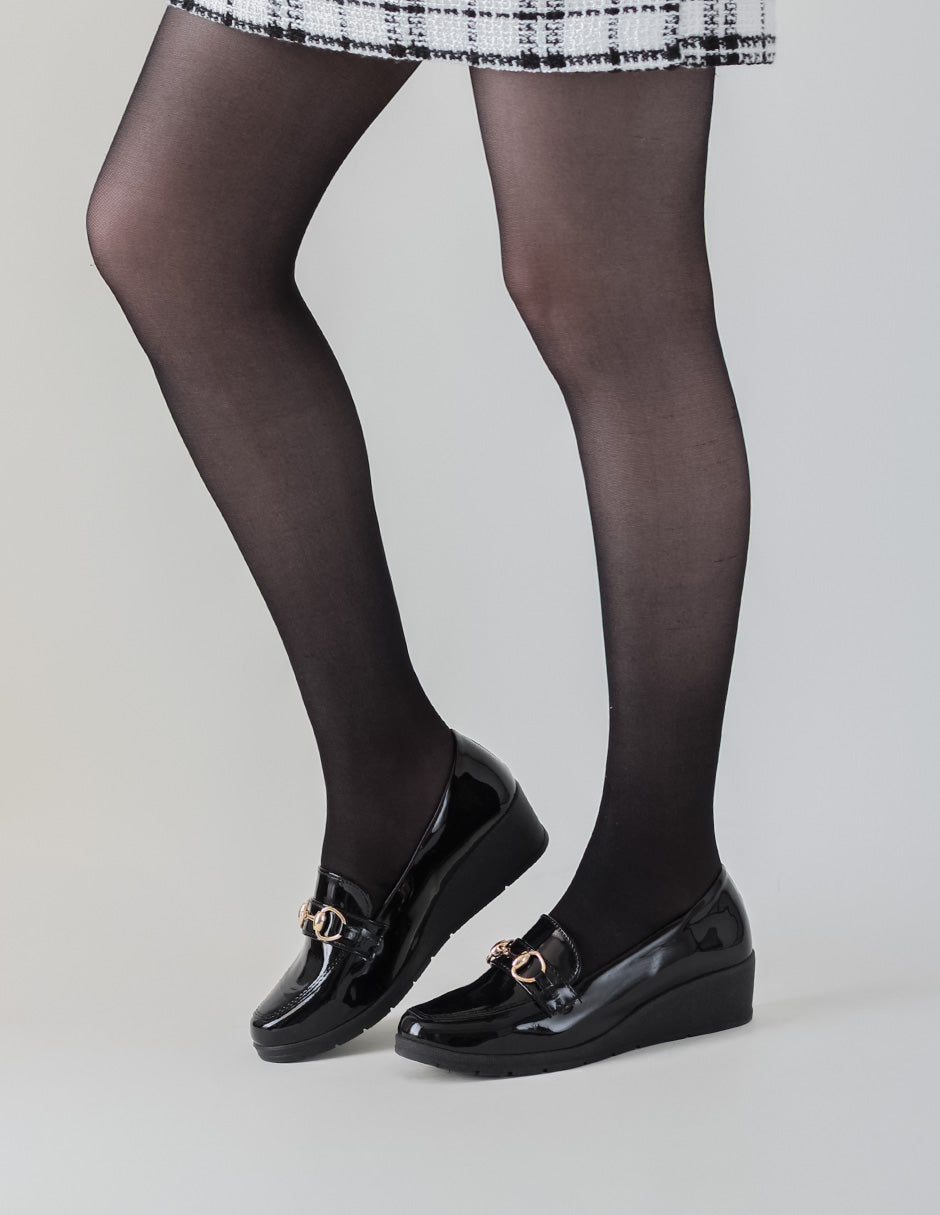 Tacón puente Confort en Charol – Negro