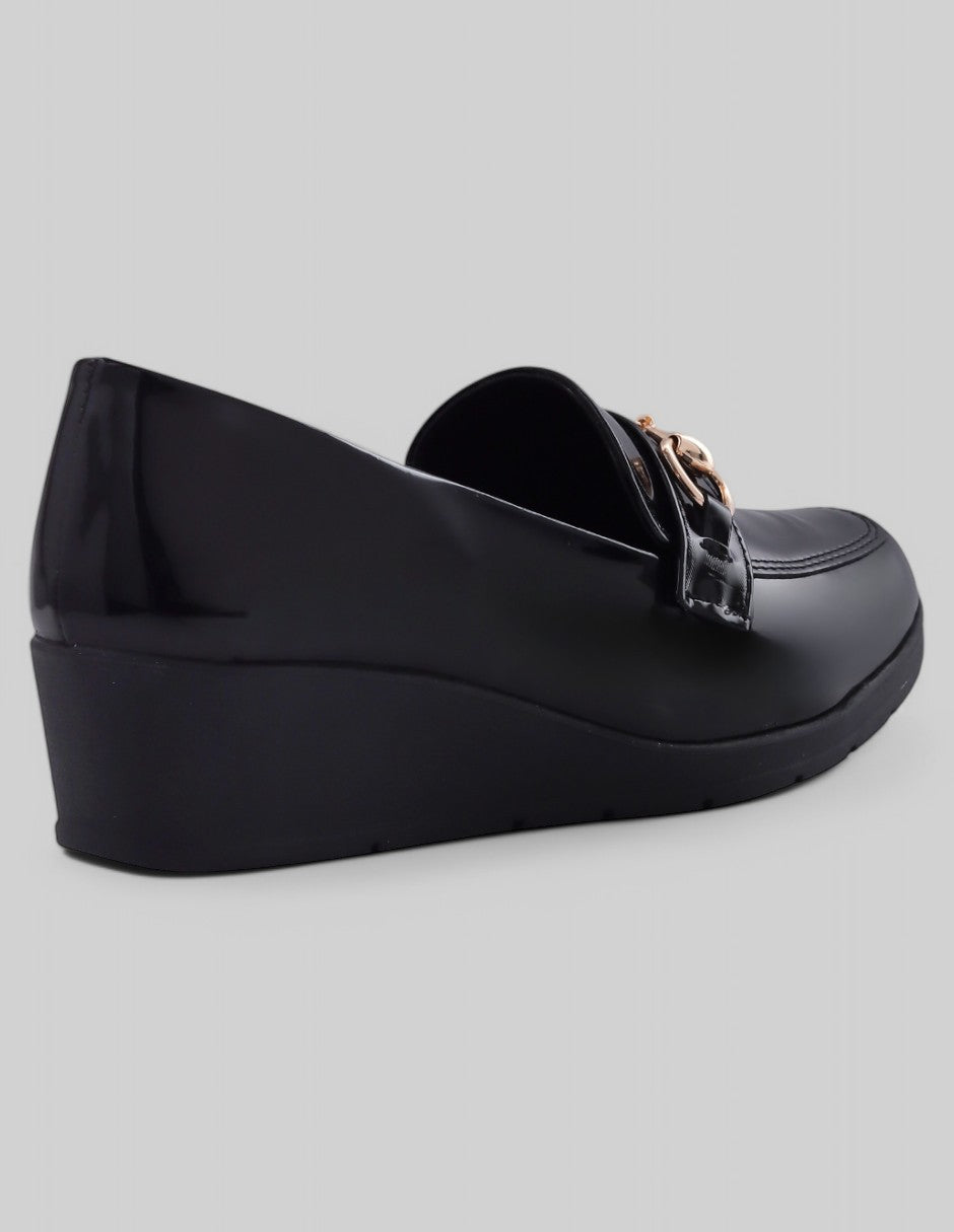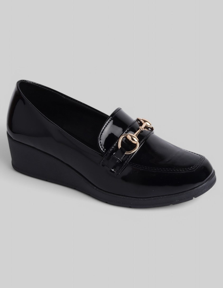 Los zapatos RBSOUL en charol color negro combinan elegancia y comodidad en un diseño clásico con un toque moderno. Su tacón bajo, punta redonda y detalle metálico decorativo los hacen ideales para el uso diario. Agrégalos a tu colección y camina con estilo en cada paso.