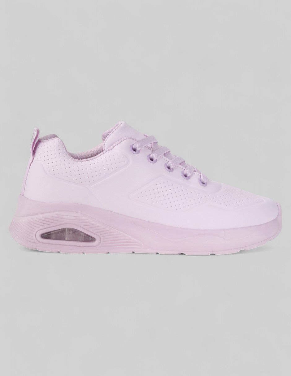 Estos zapatos en textil color morado con suela EVA son perfectos para quienes buscan comodidad ligera todo el día. Su diseño con agujeta, punta redonda y válvula de aire en la suela proporciona soporte y frescura en cada paso. ¡Agrégalos a tu carrito y muévete con libertad y estilo!