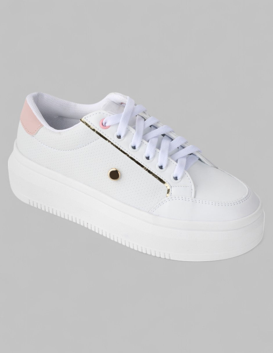 Los tenis con cordones de RBCOLLECTION, modelo Lady en piel vegana color blanco, son el complemento perfecto para tu día a día. Su diseño versátil y cómodo se adapta bien a pies delgados, anchos y largos. ¡Frescura, estilo y comodidad en cada paso! ¡Haz tu pedido ahora y lúcete siempre!
