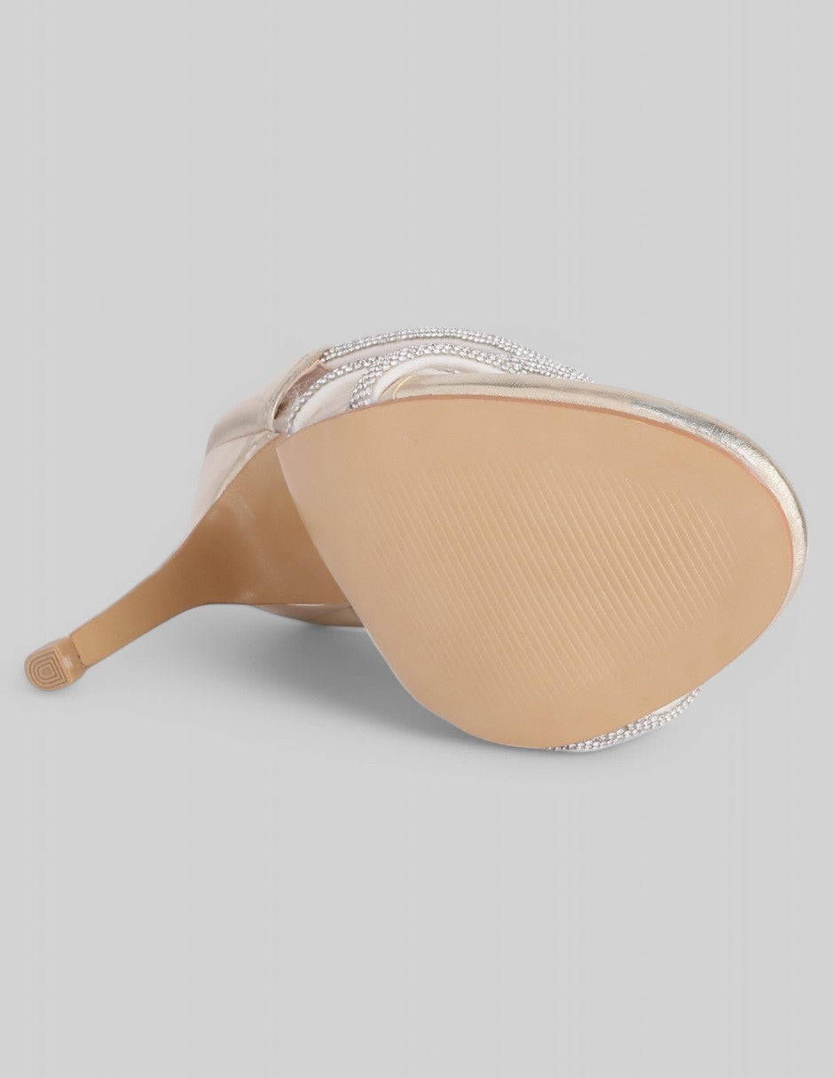 Sandalia con tacón Exterior Sintético Color Oro Para Mujer De RBCOLLECTION