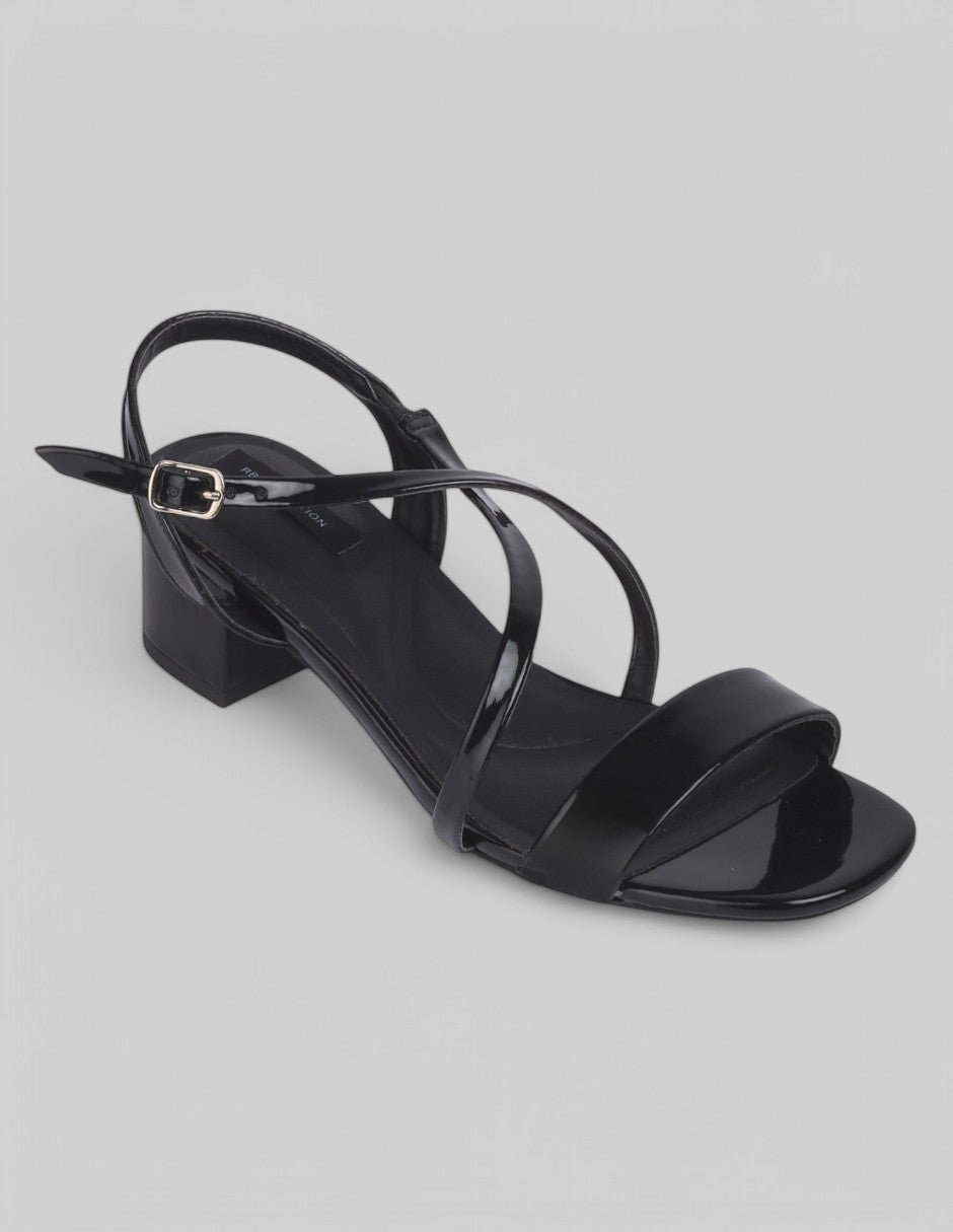 Sandalia con tacón Exterior Charol Color Negro Para Mujer De RBCOLLECTION