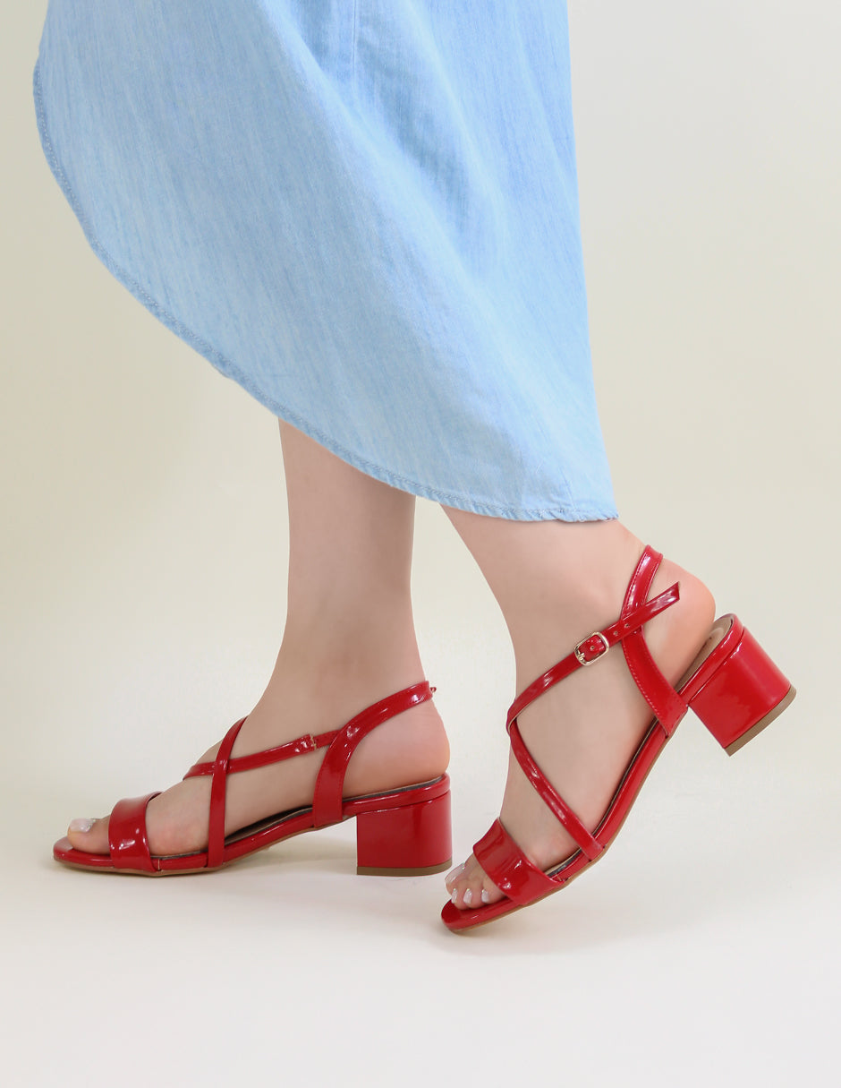 Las sandalias con tacón de RBCOLLECTION, modelo Beeny en charol color rojo, tienen el toque perfecto para destacar en cualquier ocasión. Su diseño de tiras cruzadas y ajuste firme se adapta muy bien a cualquier tipo de pie. ¡Hazlas tuyas y lleva tu estilo al siguiente nivel!