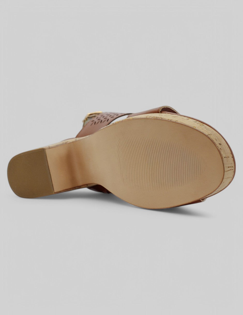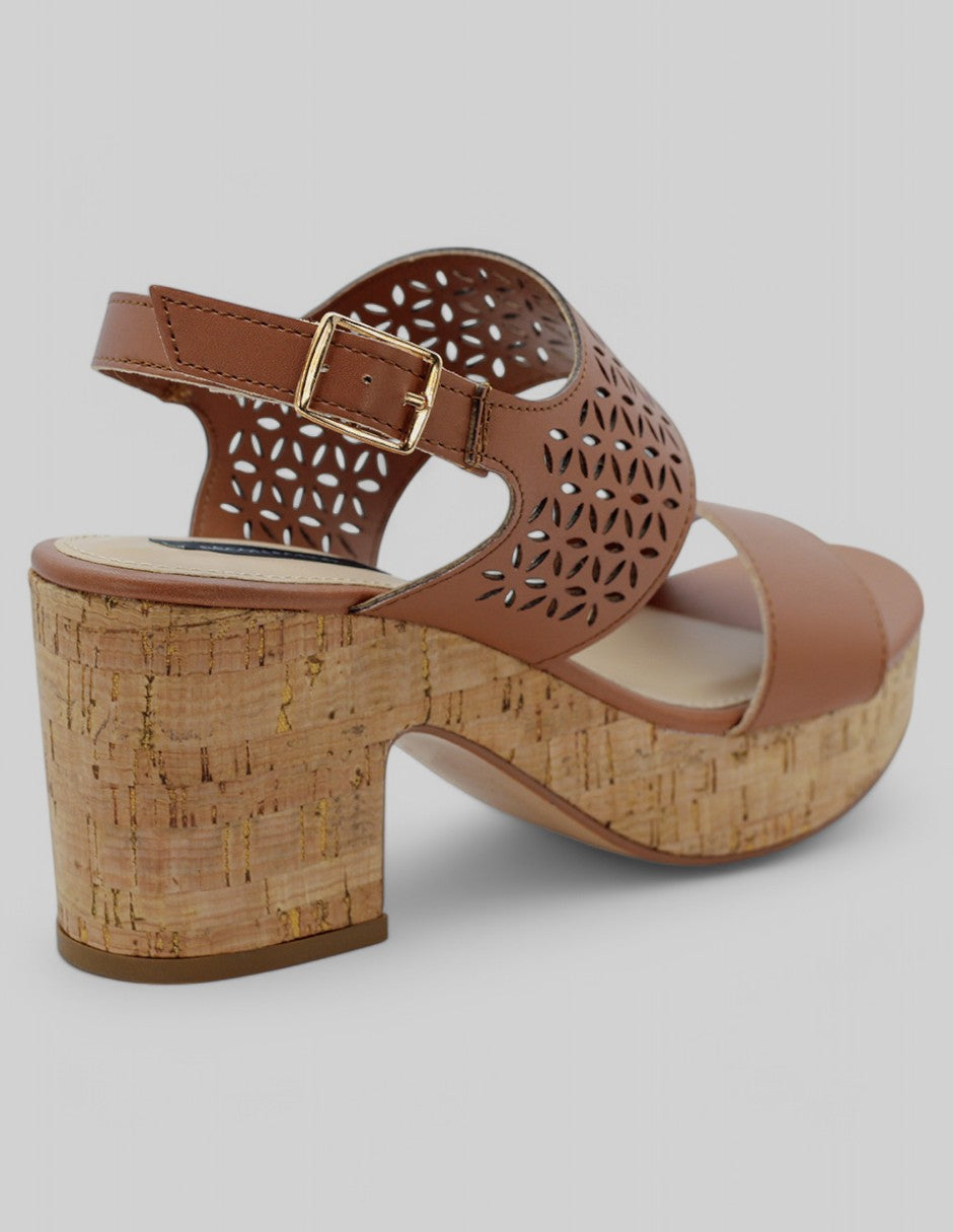 Sandalia con tacón Exterior Piel vegana Color Café Para Mujer De RBCOLLECTION