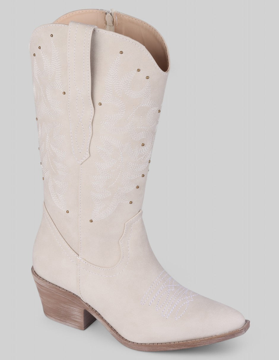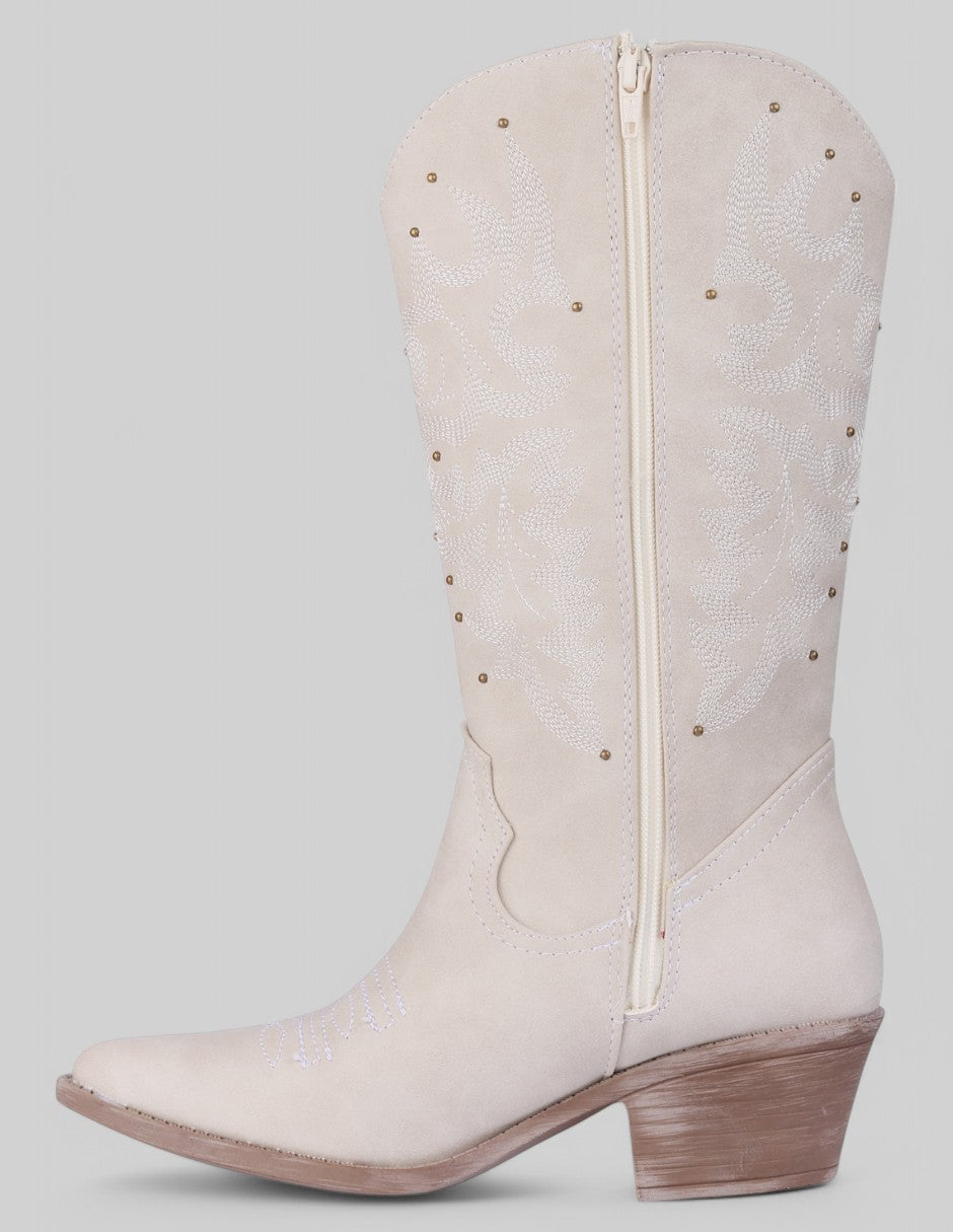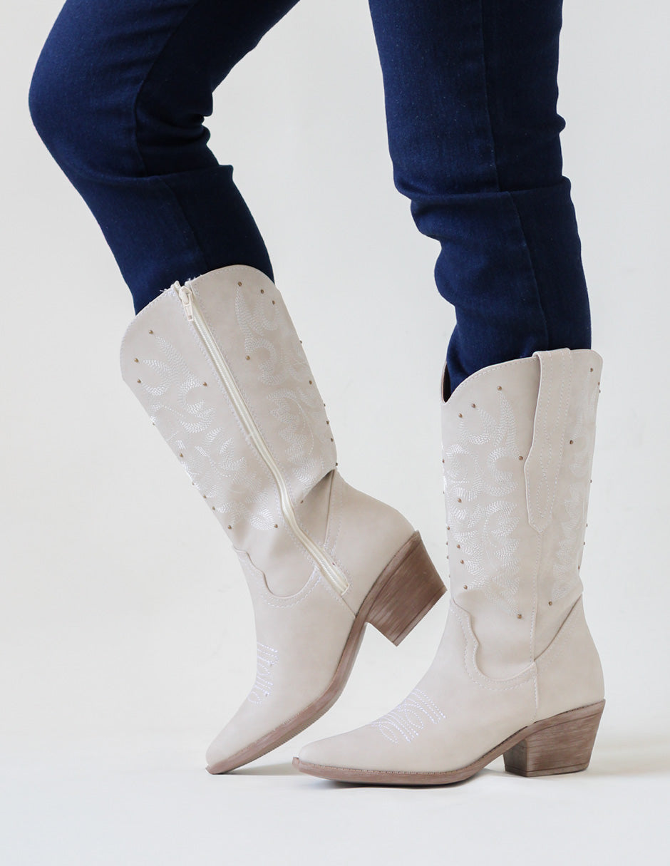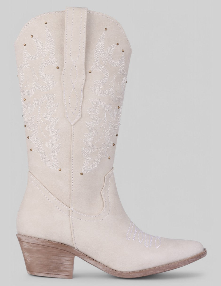 Las botas tipo western RBCOLLECTION modelo West en piel vegana color blanco destacan por su diseño atrevido y femenino. Con tacón cómodo y ajuste ideal para todo tipo de pie, son perfectas para darle un giro a tu outfit. ¡Hazlas tuyas y marca tendencia en cada paso! ¿Lista para brillar?