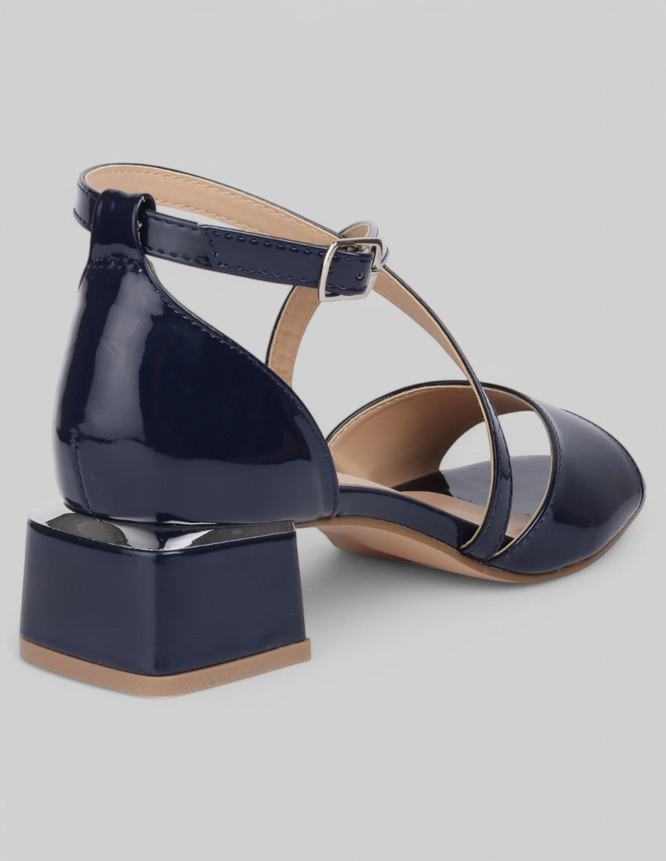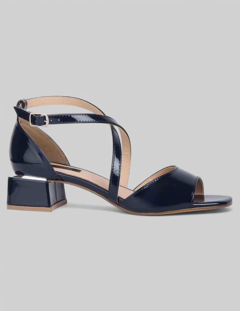 Sandalia con tacón Exterior Charol Color Azul Para Mujer De RBCOLLECTION