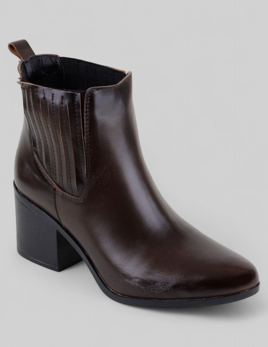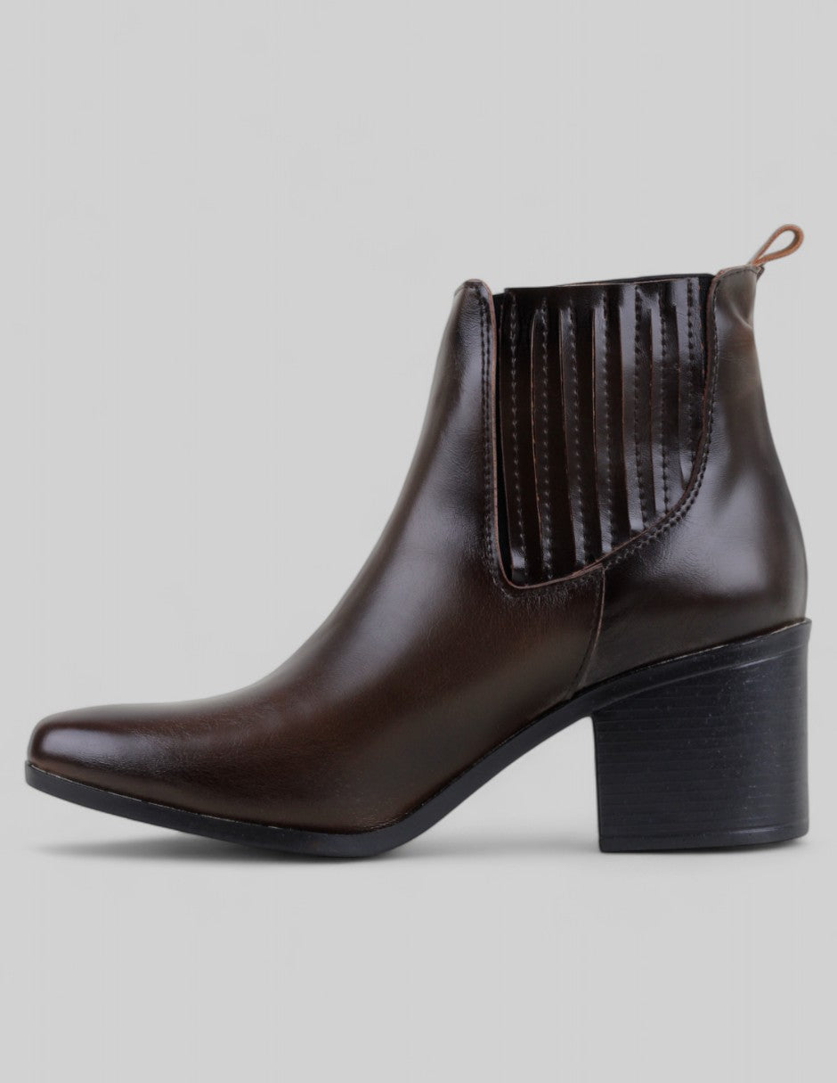 Botín con tacón Exterior Piel vegana Color Café Para Mujer De RBCOLLECTION