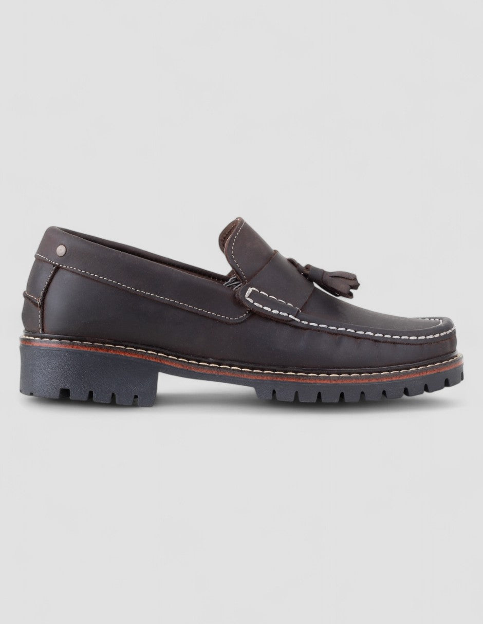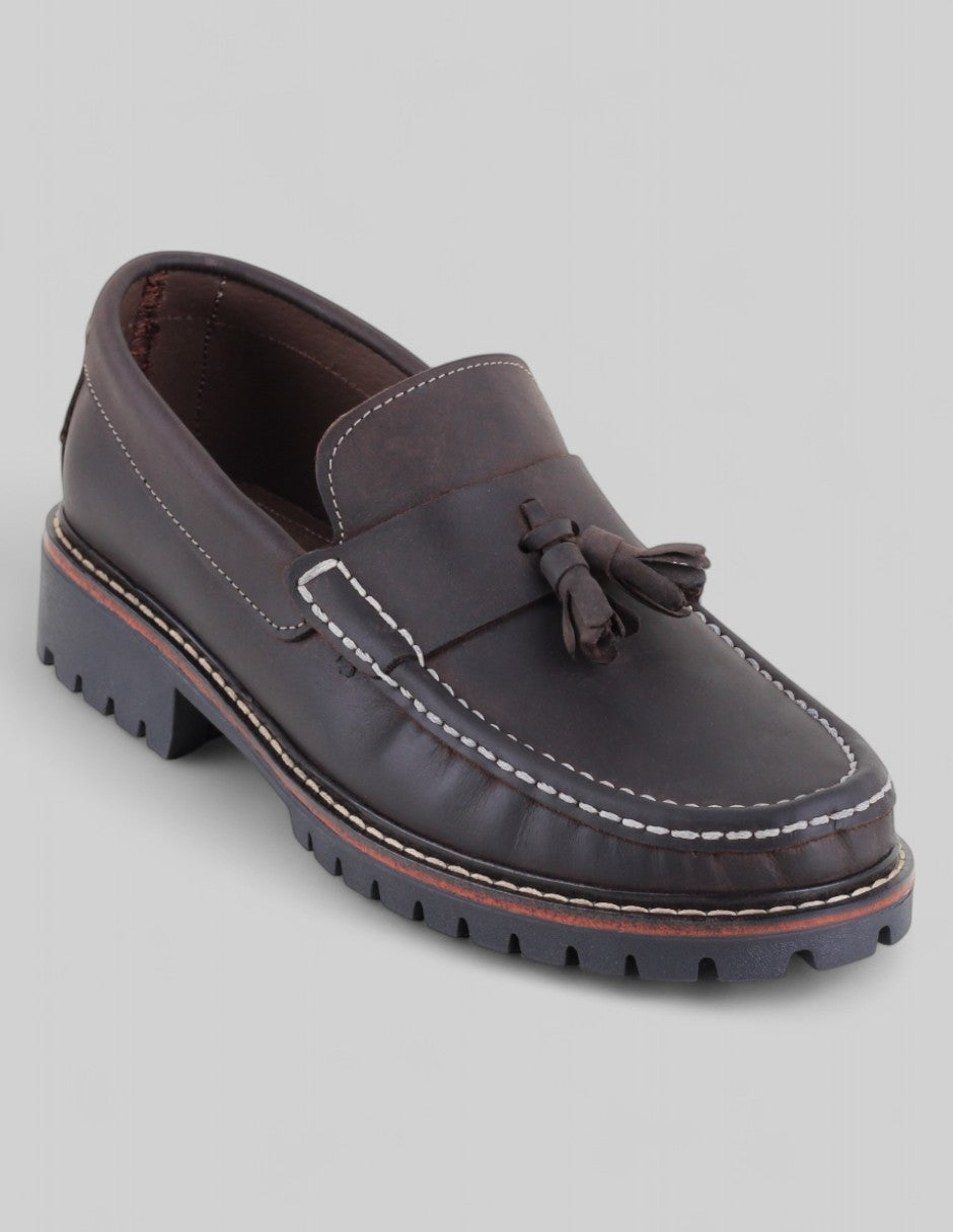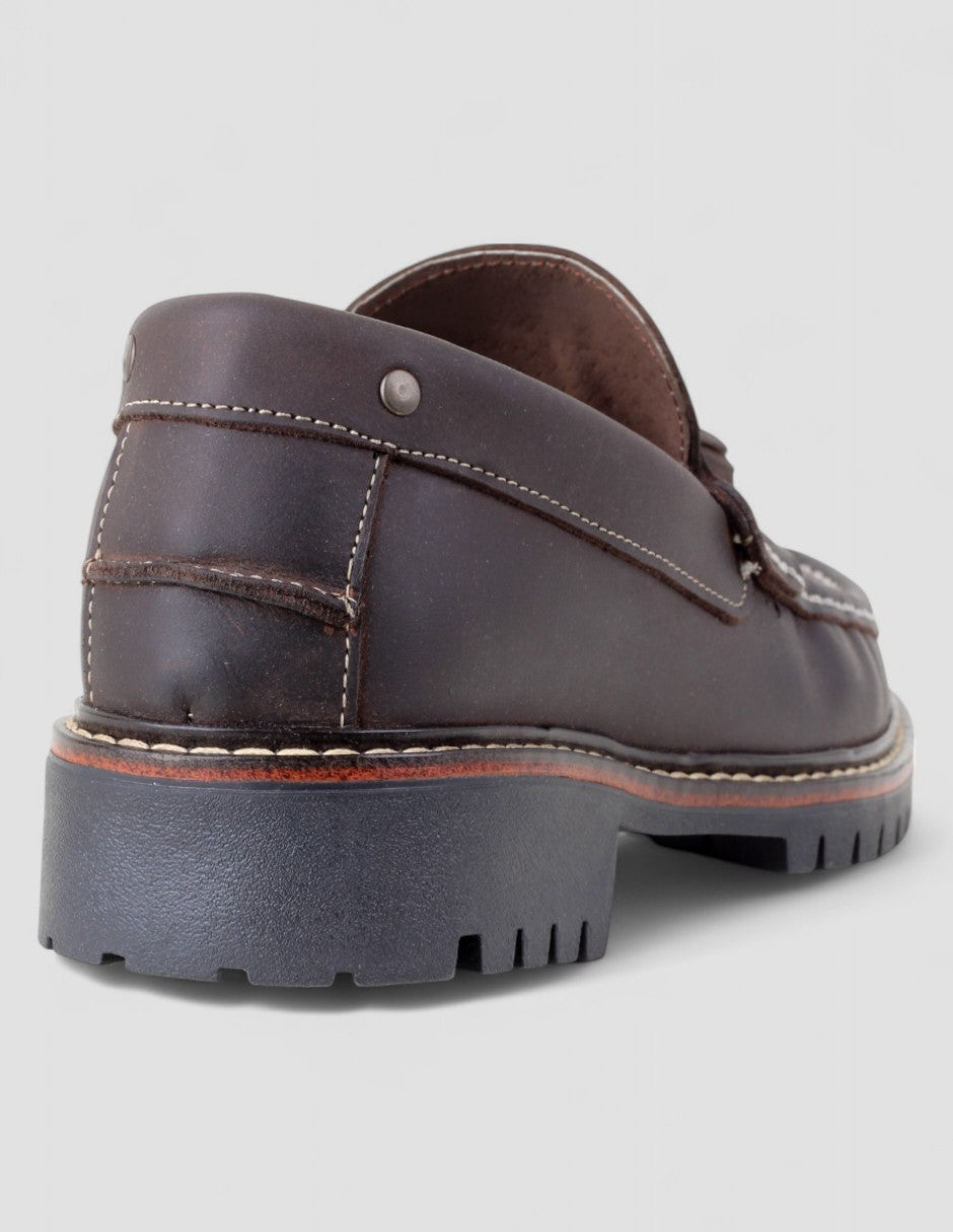 Los mocasines Signature Line en piel café combinan elegancia robusta y estilo auténtico. Su diseño con borlas y suela de gran tracción aporta carácter sin perder sofisticación. Perfectos para destacar con personalidad en cada paso. Llévalos y renueva tu look con un clásico firme, versátil y listo para cualquier ocasión. ¡Hazlos tuyos hoy!