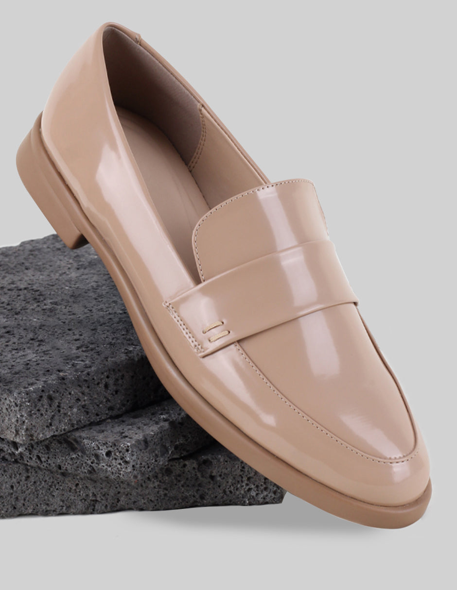 Los mocasines Tender en charol beige de RBCOLLECTION son ese básico elegante para looks formales relajados. Su ajuste favorece todo tipo de pie, y el acabado brillante le da un toque moderno y femenino. Parte de una colección hecha en México que une diseño, confort y estilo. ¡Hazlos parte de tu día a día!.