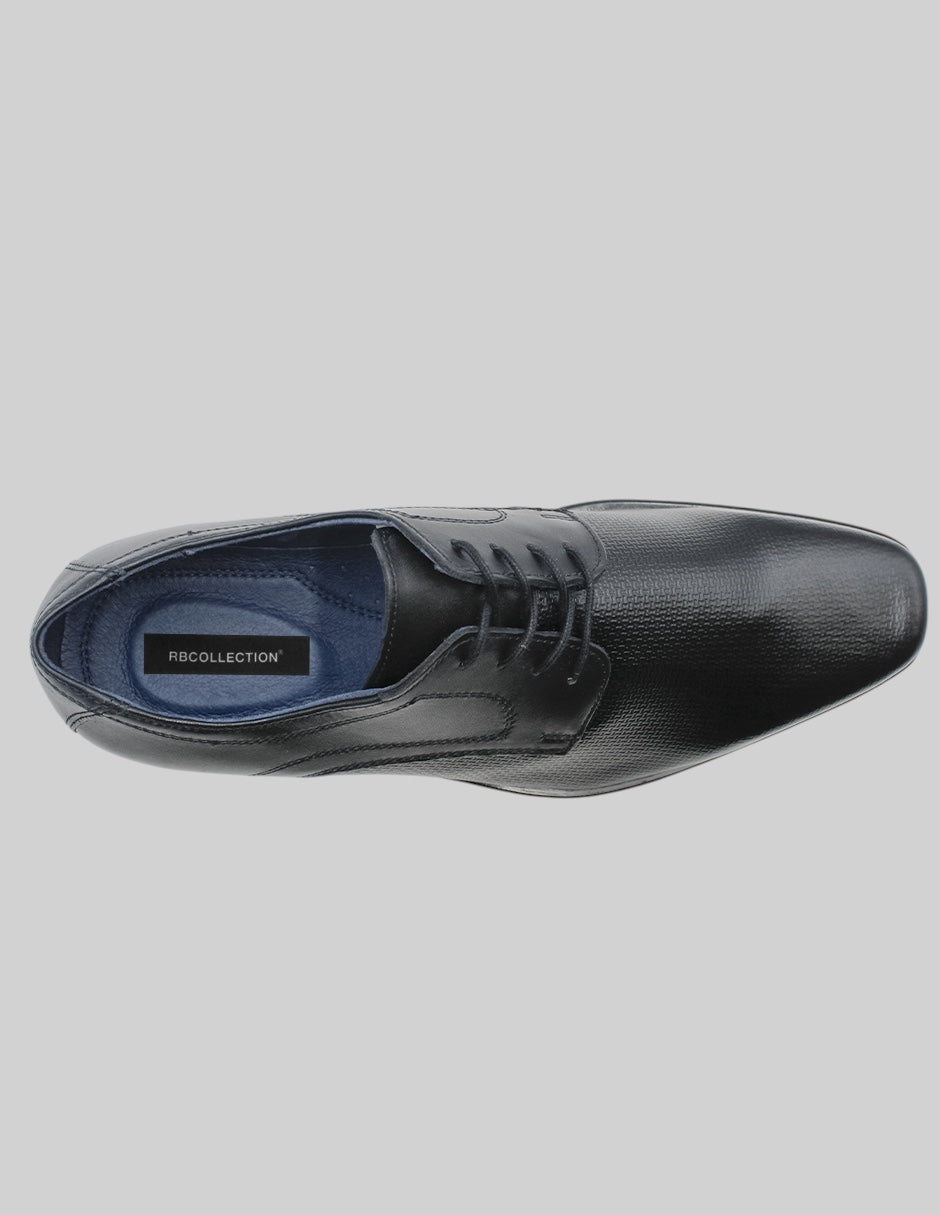 Los zapatos RBCOLLECTION en piel color negro combinan elegancia y comodidad para cualquier ocasión formal. Su diseño clásico con ajuste de agujeta y suela resistente brinda un look sofisticado y seguro en cada paso. Perfectos para el trabajo o eventos especiales.