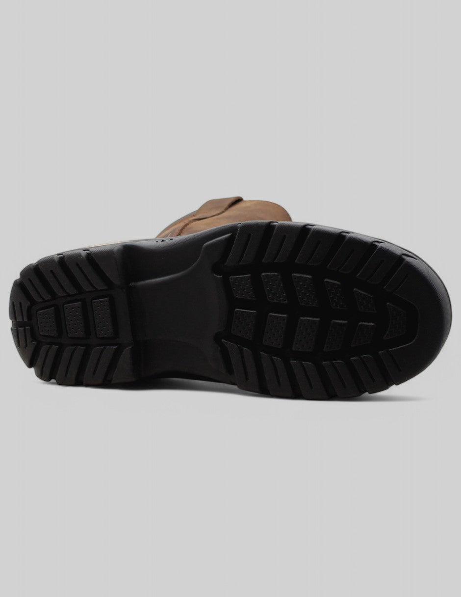 Las botas RBCOLLECTION modelo Cowboy en piel café ofrecen un estilo clásico y funcional. Su diseño sin agujetas permite un ajuste práctico, mientras que su suela resistente brinda estabilidad en cualquier terreno. Ideales para el trabajo o el día a día.