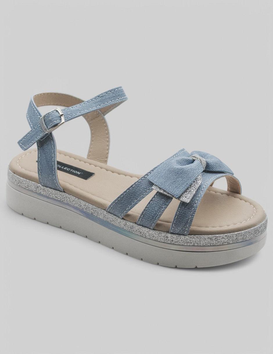 Las sandalias para niña de la línea RBCOLLECTION, modelo Kids, en piel vegana color azul, combinan comodidad y estilo en cada paso. Su diseño ligero y ajuste con hebilla aseguran un calce seguro, mientras que su suela con canales antiderrapantes brinda estabilidad. El detalle de moño añade un toque encantador, ideal para cualquier ocasión. ¡Deja que disfrute de la temporada con un calzado fresco y versátil! ¡Ordénalas ahora!