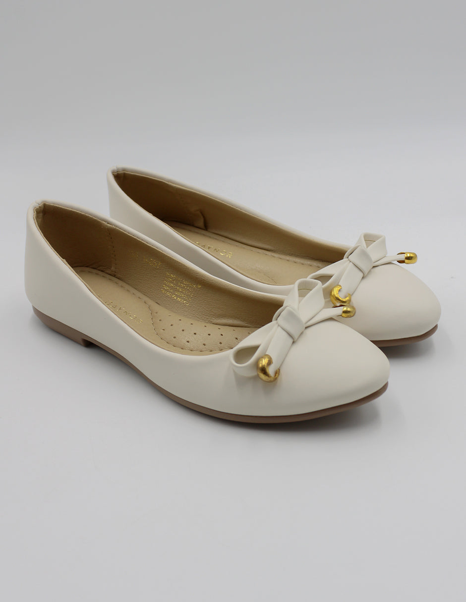 Flats clásicas de piel vegana color blanco para mujer de Dorothy Gaynor, creadas para realzar tu estilo con comodidad y sofisticación. Este modelo presenta un diseño minimalista con un elegante detalle de moño adornado con toques dorados, aportando un aire de distinción. Su construcción ergonómica y suela antiderrapante garantizan confort y seguridad en cada paso, perfectas para usarse durante largas jornadas. Estas flats son ideales para combinar con vestidos, faldas o pantalones, adaptándose tanto a ocasiones formales como informales. Una opción versátil y moderna que refleja buen gusto, sostenibilidad y elegancia en un solo par de zapatos.