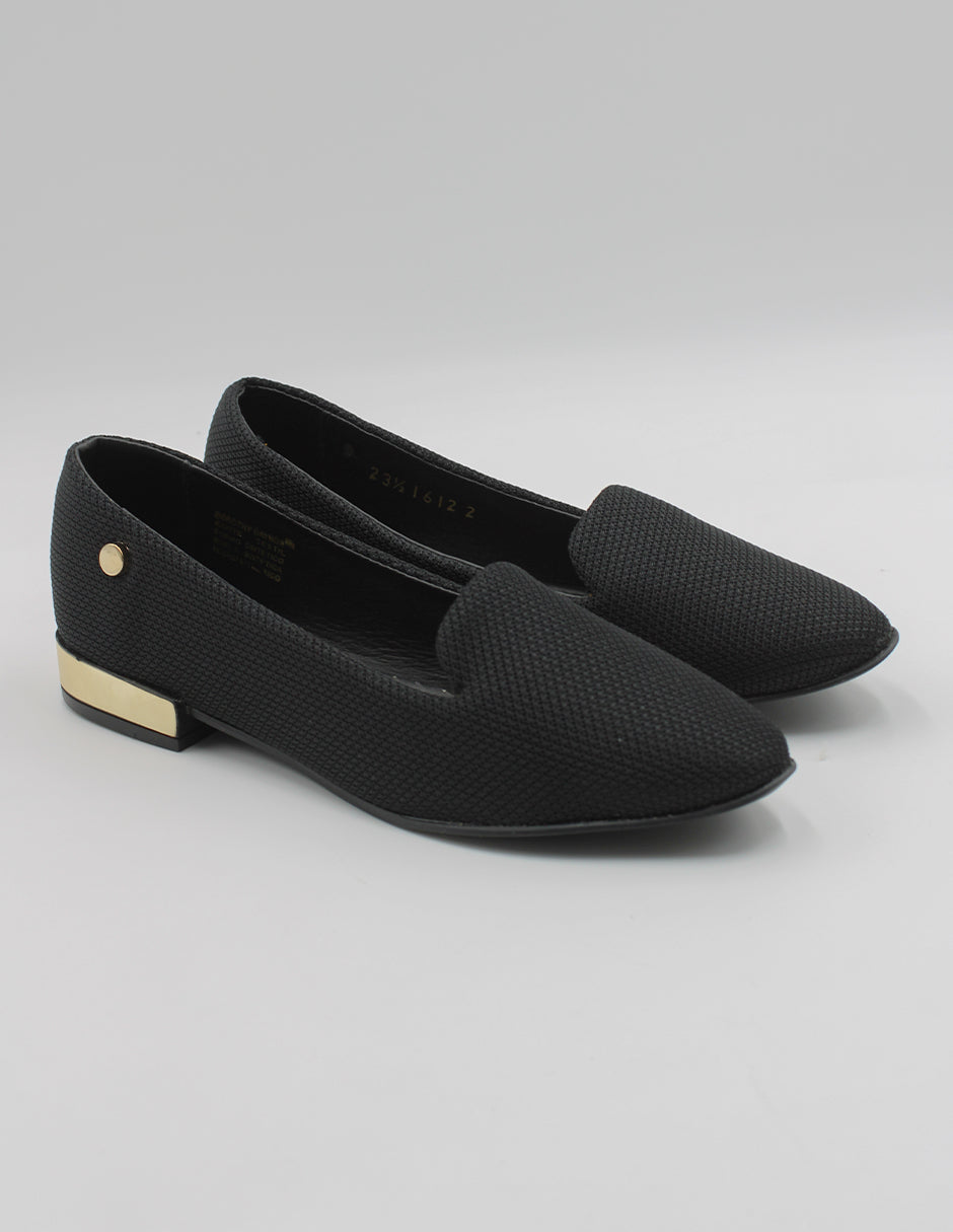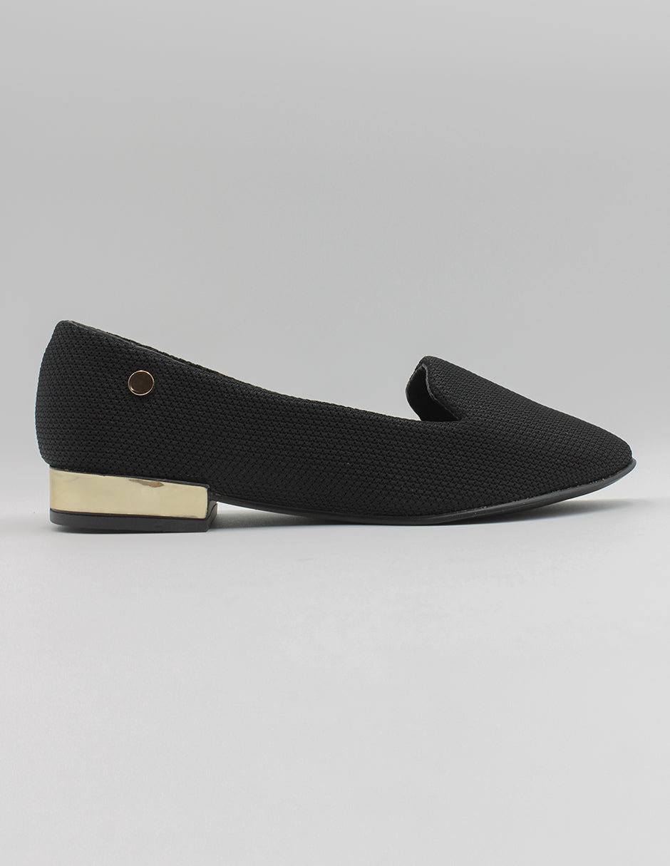 Flats clásicas confeccionadas en textil color negro para mujer de Dorothy Gaynor, un modelo que combina elegancia y confort. Estas flats destacan por su diseño minimalista y versátil, ideales para complementar cualquier look, desde atuendos formales hasta casuales. La textura del textil agrega un toque de sofisticación, mientras que el detalle metálico en el tacón aporta un estilo moderno y distinguido.