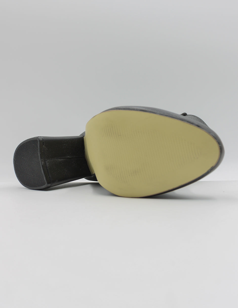 Su tacón grueso proporciona altura y estabilidad, mientras que su punta redondeada asegura comodidad durante todo el día. El cierre lateral facilita un ajuste práctico y rápido.