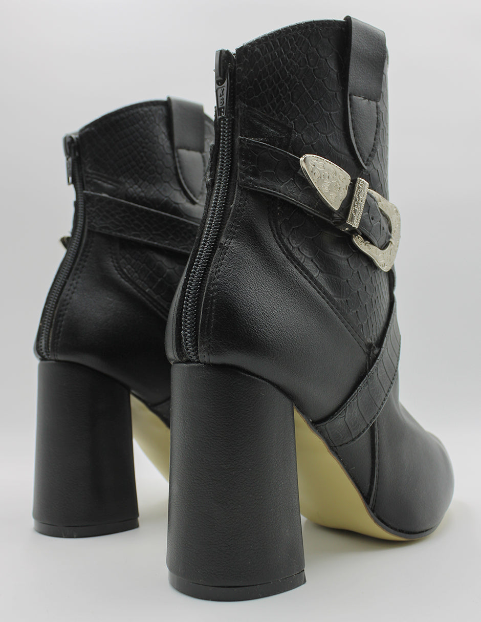 • Botín con tacón en Piel vegana – Negro Talla 23