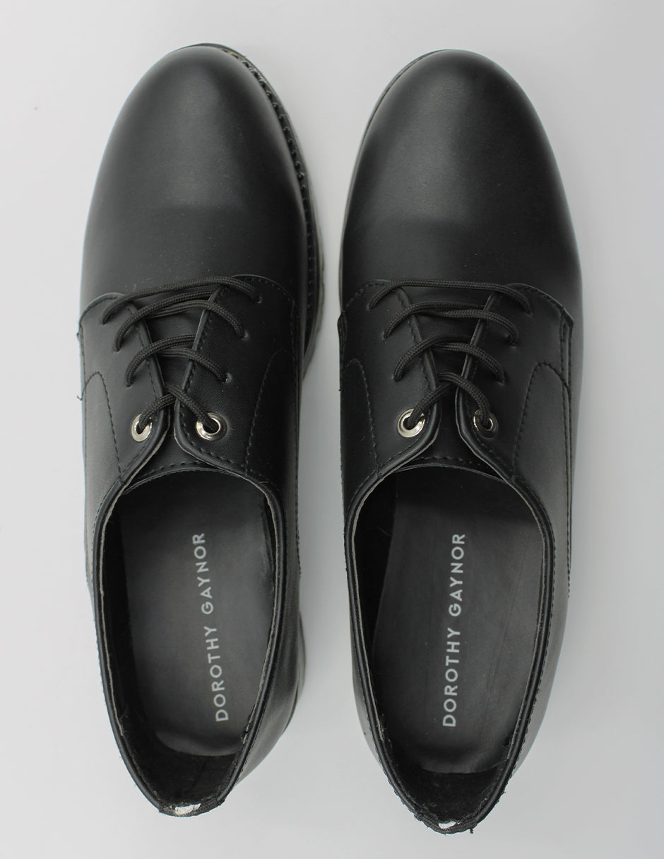 Oxfords clásicos para mujer de Dorothy Gaynor, elaborados en piel vegana color negro, ideales para un estilo sofisticado y versátil. Su diseño tradicional con cierre de agujetas proporciona un ajuste seguro y personalizado, mientras que su acabado impecable agrega un toque de elegancia.