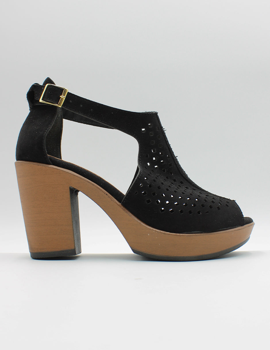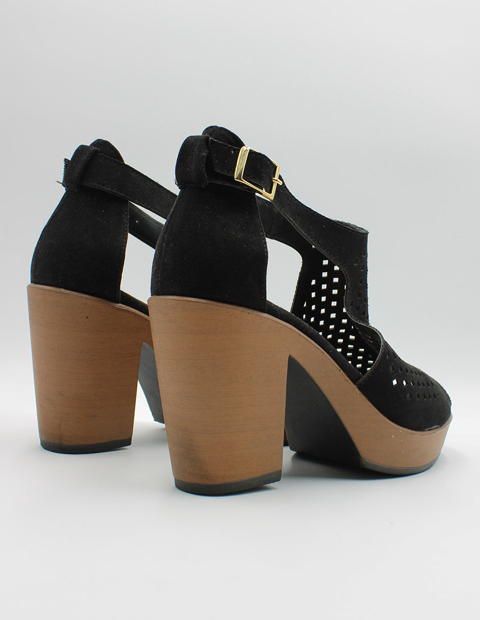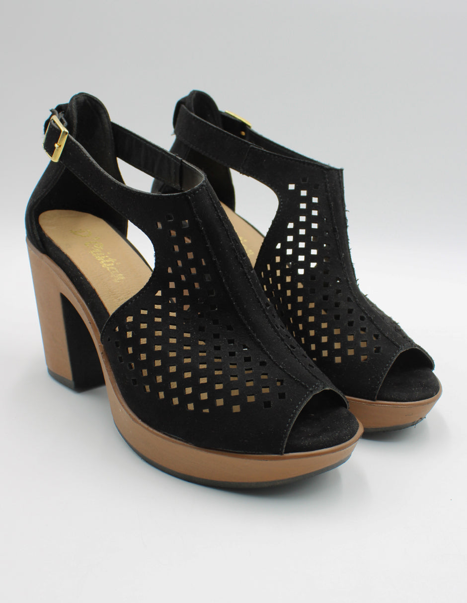 • Sandalia con tacón en Gamuza – Negro Talla 23